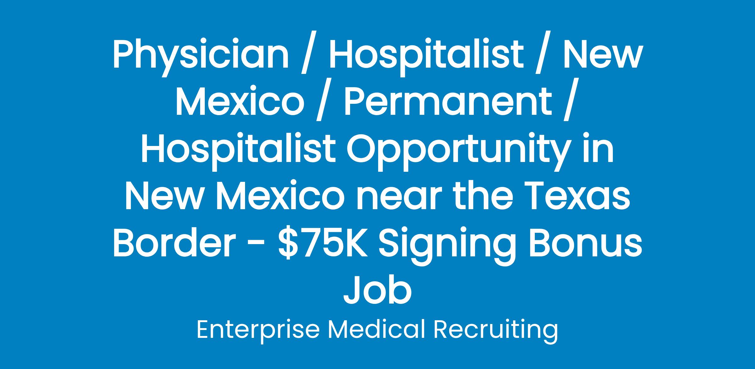 We have partnered with a group in Clovis, New Mexico, that is seeking Hospital Medicine physicians to join a close-knit team of six physicians at a 106-bed facility.