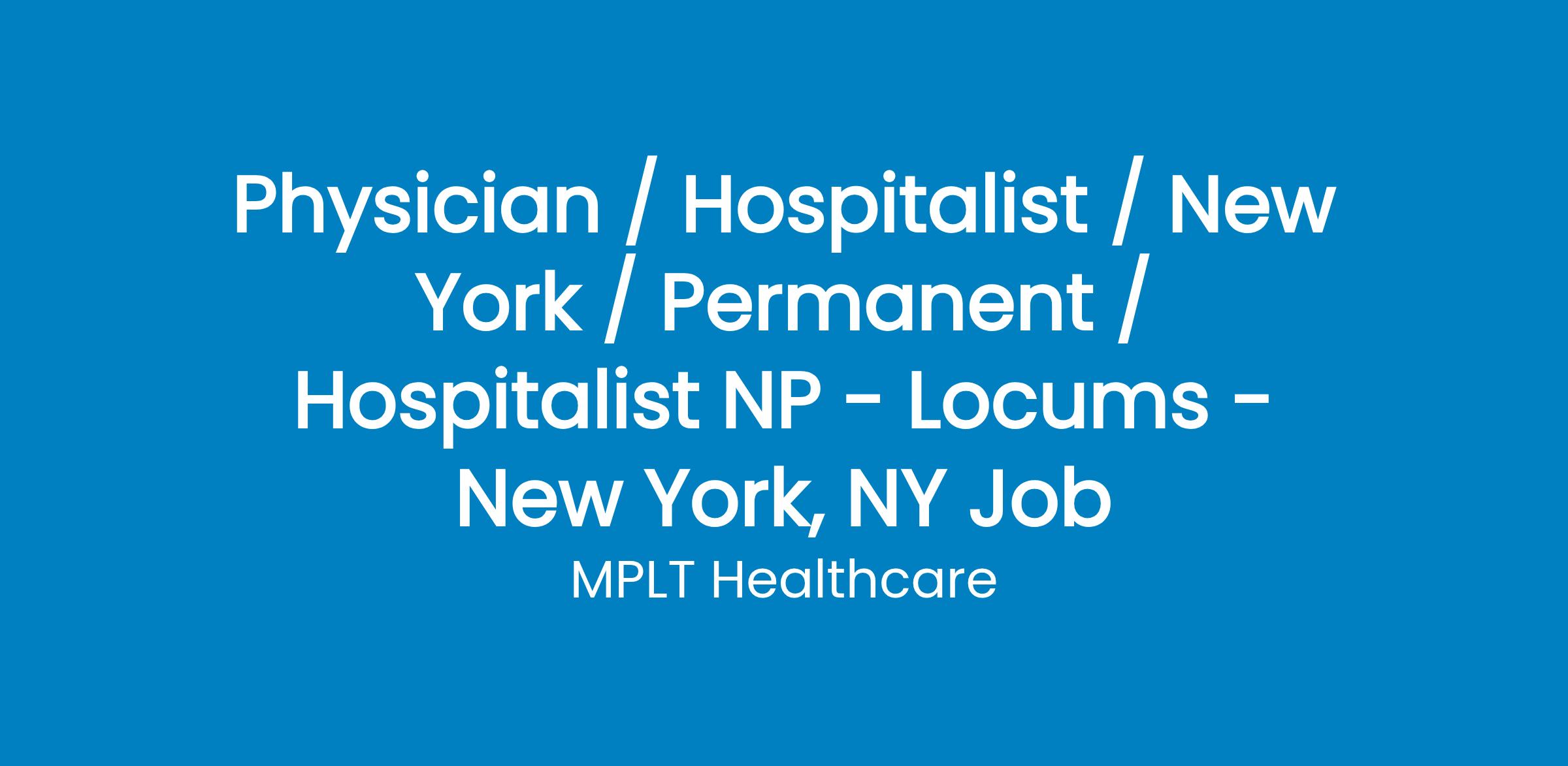 MPLT Healthcare is looking for practitioner s who Understand the Urgency, Never Give Up, and Have the Courage to Excel in the forever changing medical industry! We have numerous opportunities for an experienced Hospitalist NP with highly competitive pay rates in New York, NY.