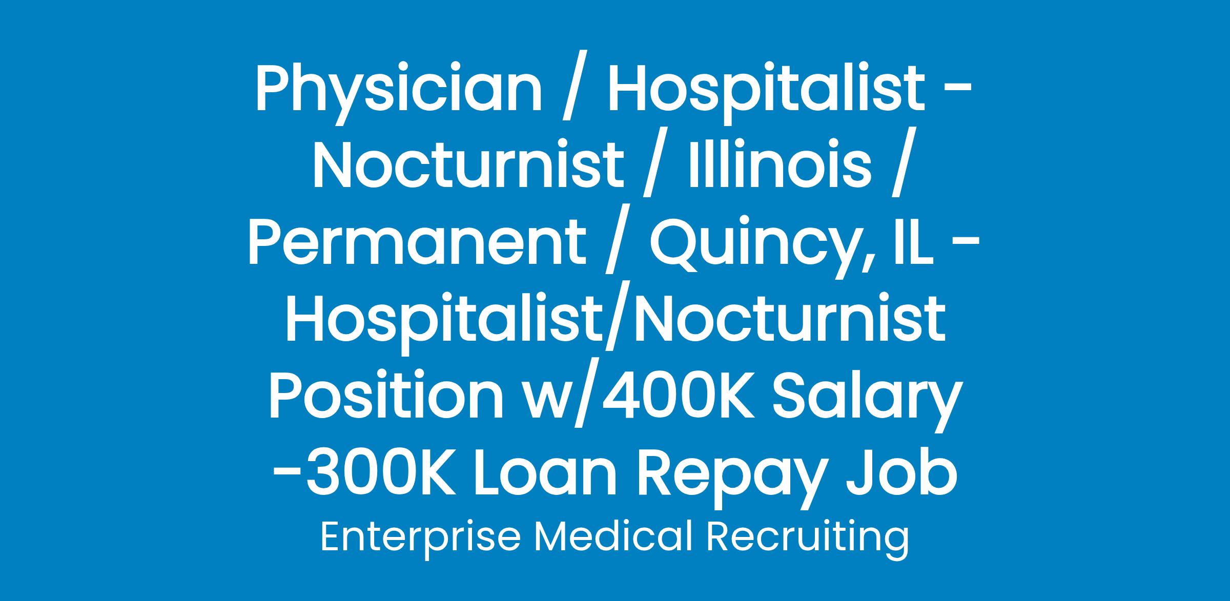 A Hospitalist team in Western Illinois has recently transitioned to a hospital-employed group and is actively interviewing for Nocturnist Hospitalists to join their team.