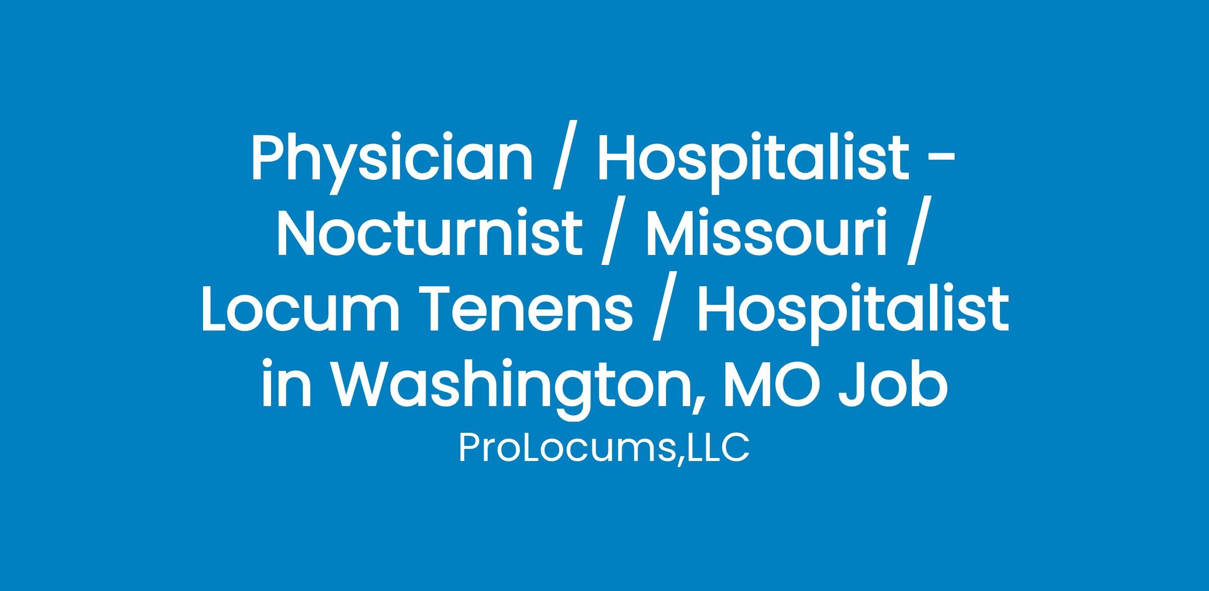 Physician / Hospitalist - Nocturnist / Missouri / Locum Tenens / Hospitalist, Nocturnist Locum job in Washington, MO Job