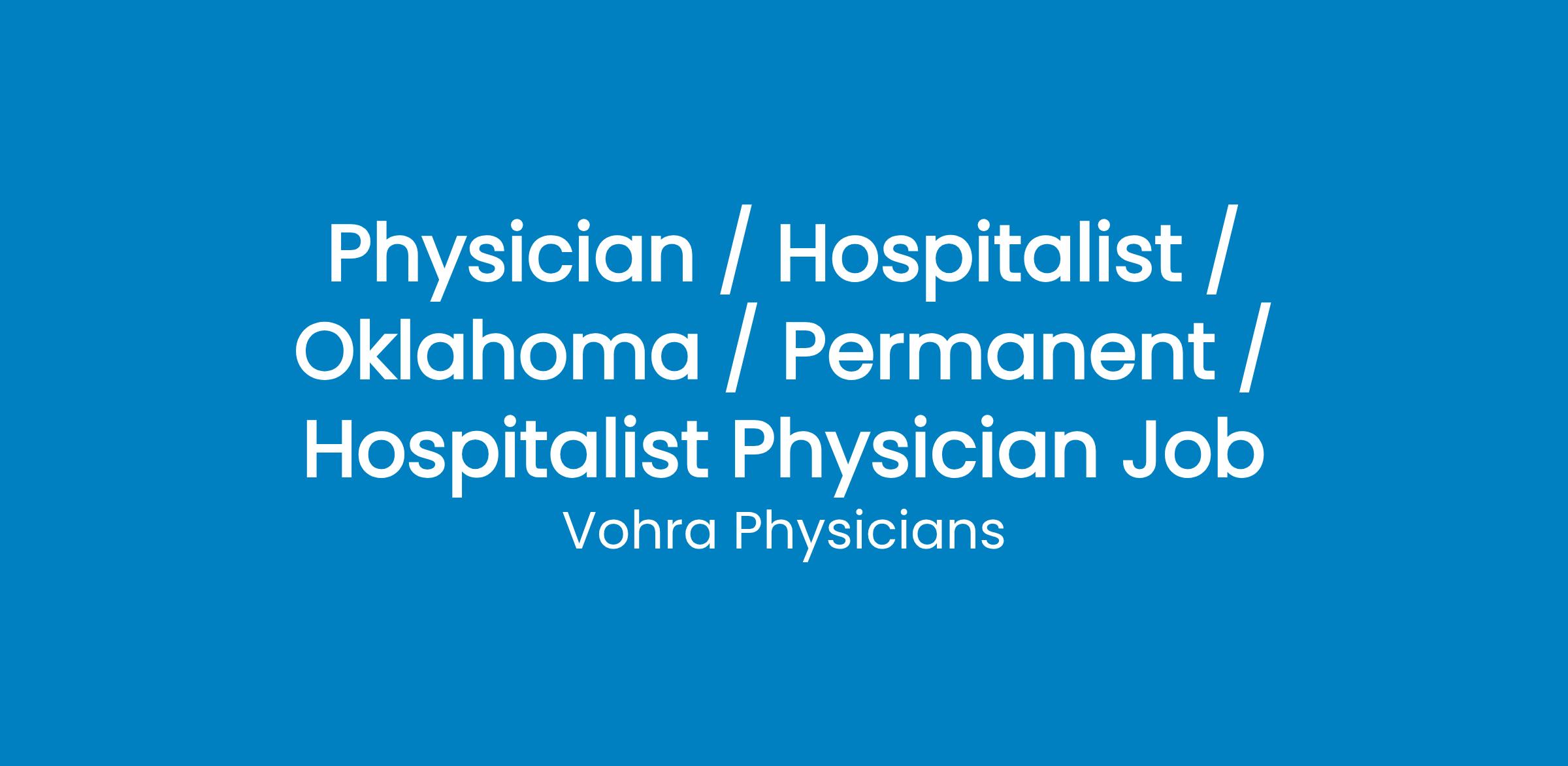 Full-Time Hospitalist Physician Position in Tulsa, OK with National Wound Physician Group