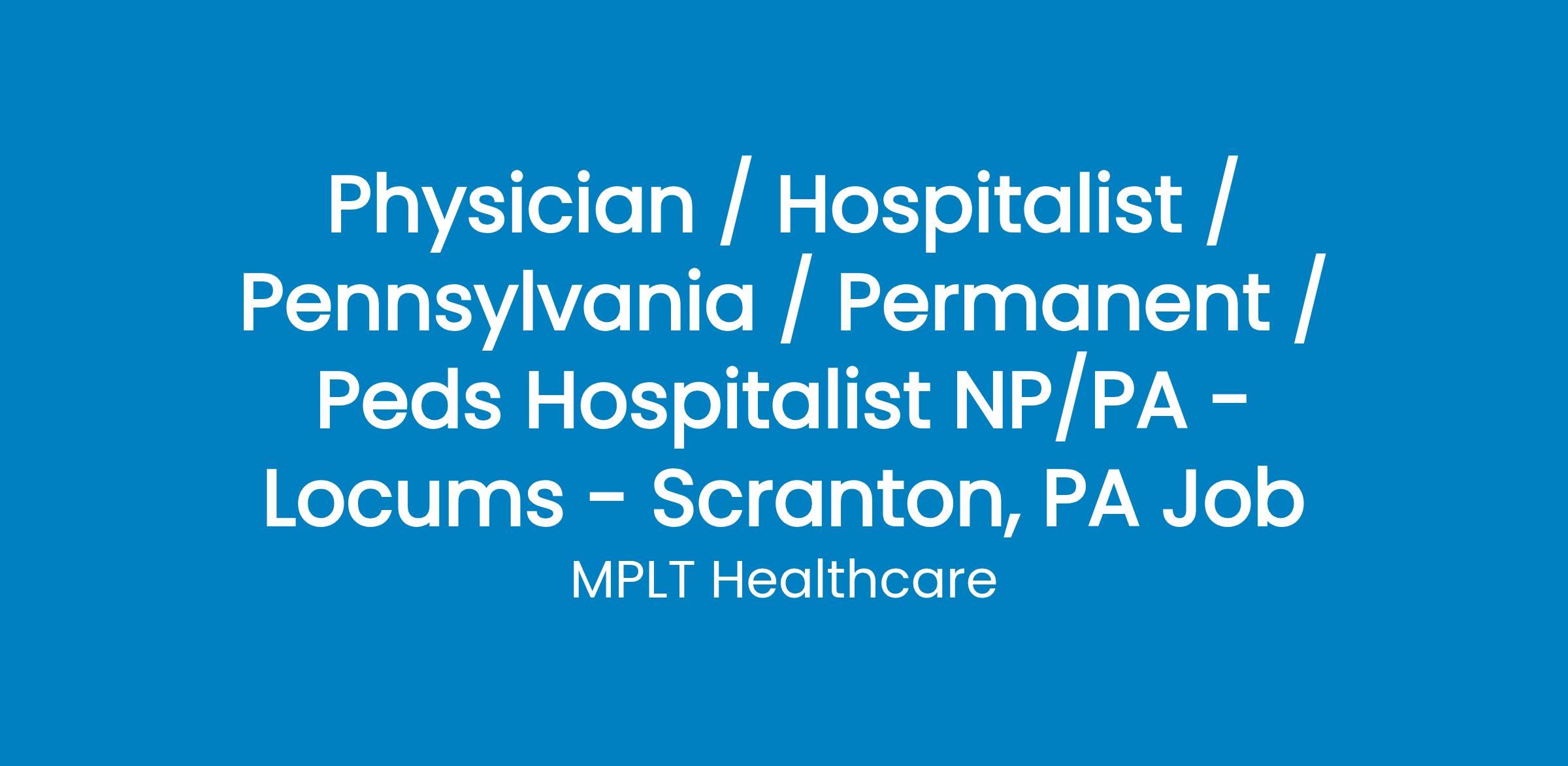 MPLT Healthcare is looking for NP/PA s who Understand the Urgency, Never Give Up, and Have the Courage to Excel in the forever changing medical industry! We have numerous opportunities for an experienced Pediatric Hospitalist NP/PA with highly competitive pay rates in Scranton, PA .