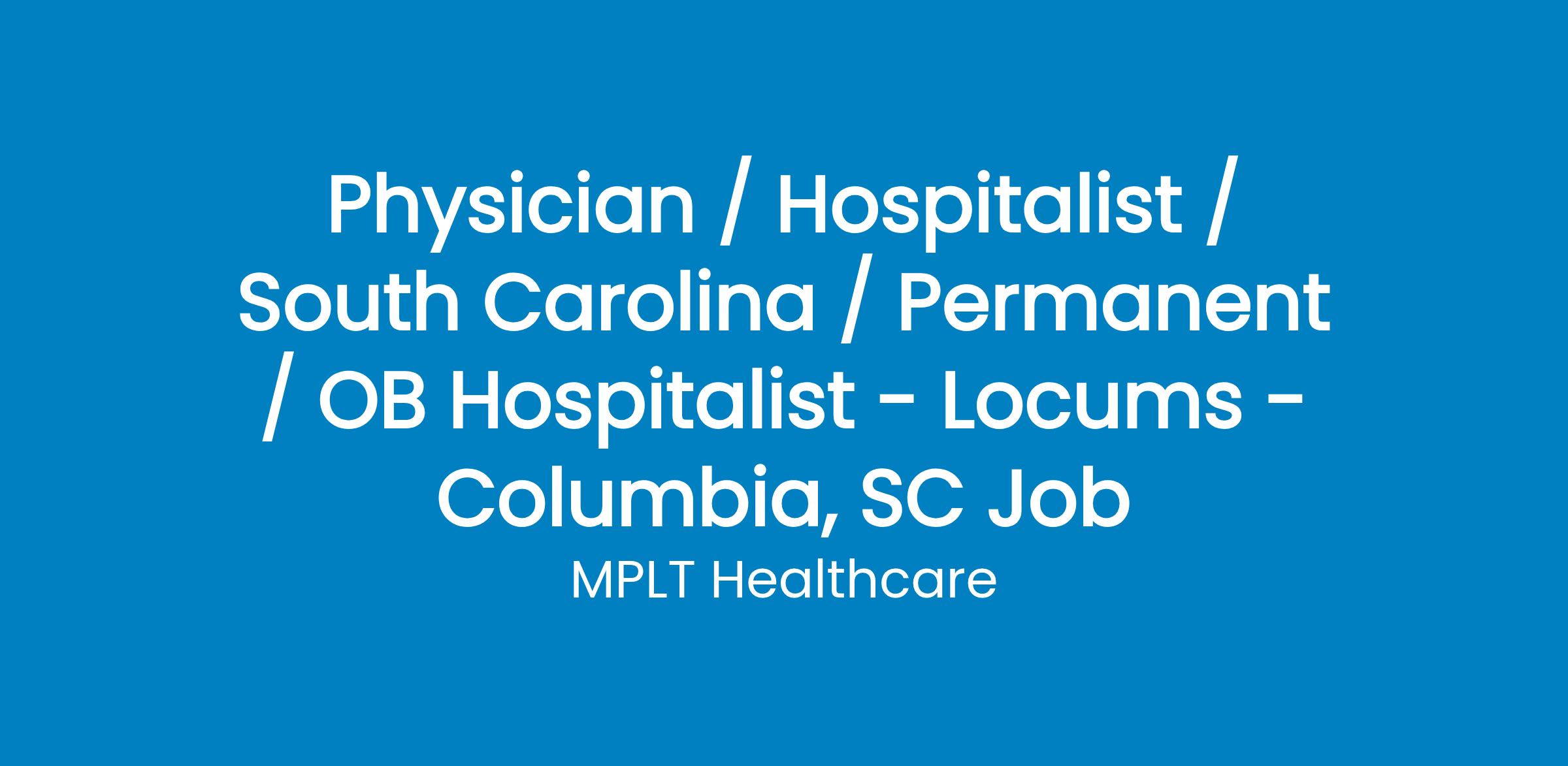 MPLT Healthcare is looking for physicians who Understand the Urgency, Never Give Up, and Have the Courage to Excel in the forever changing medical industry! We have numerous opportunities for an experienced OB Hospitalist with highly competitive pay rates in Columbia, SC.