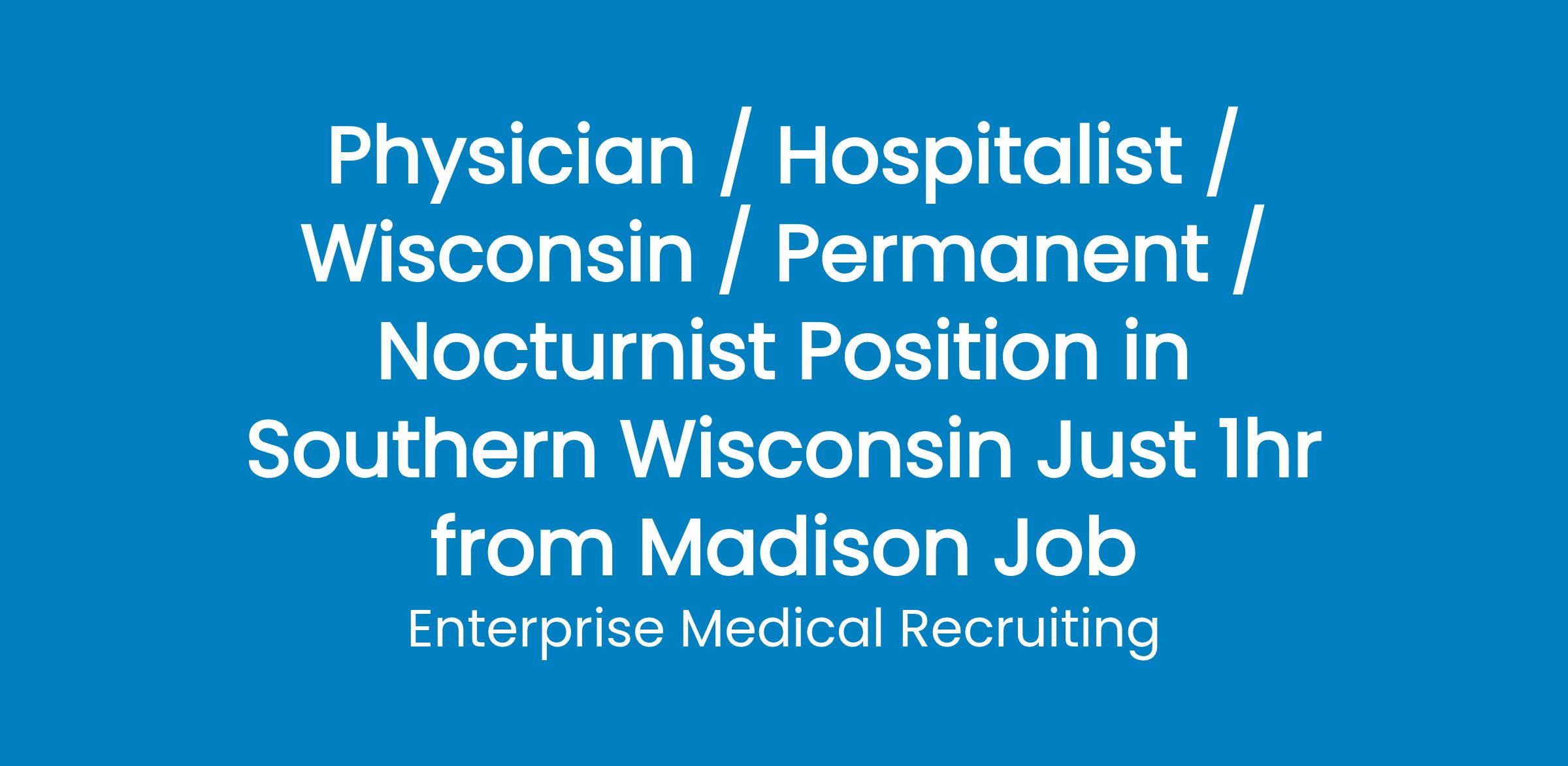 Enterprise Medical Recruiting is assisting a nationally recognized hospital in their addition of a BC/BE Nocturnist in Beloit, WI. This is a full-time employed opportunity to join a team providing quality health care and exceptional patient service.