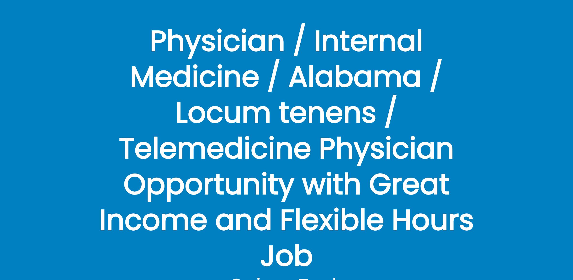 Physician / Internal Medicine / Alabama / Locum tenens / Telemedicine Physician Opportunity with Great Income and Flexible Hours Job