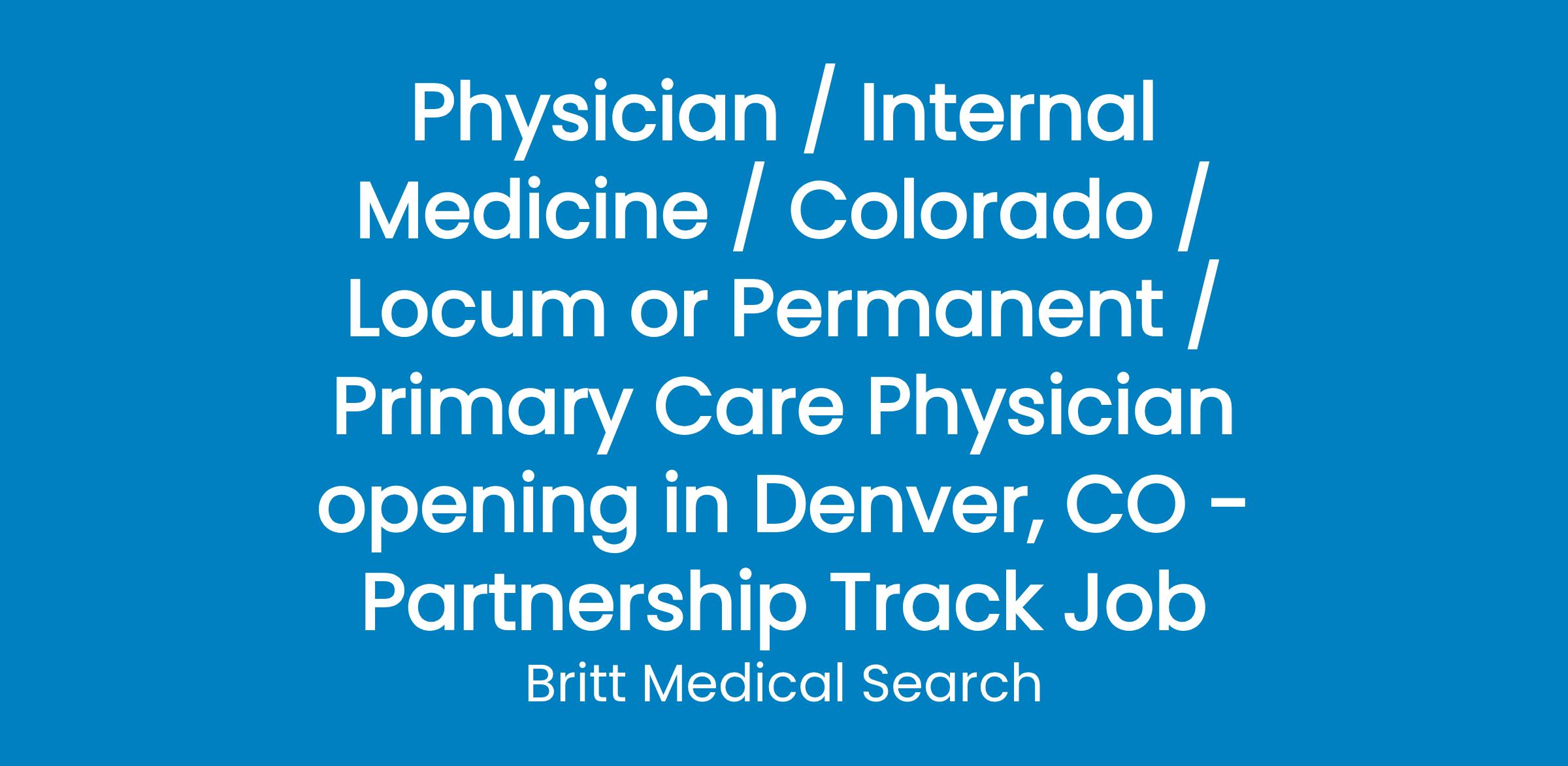 BC/BE Internal Medicine or Family Medicine Physician who is intrinsically motivated to provide excellent care to older adults in Denver, Colorado.