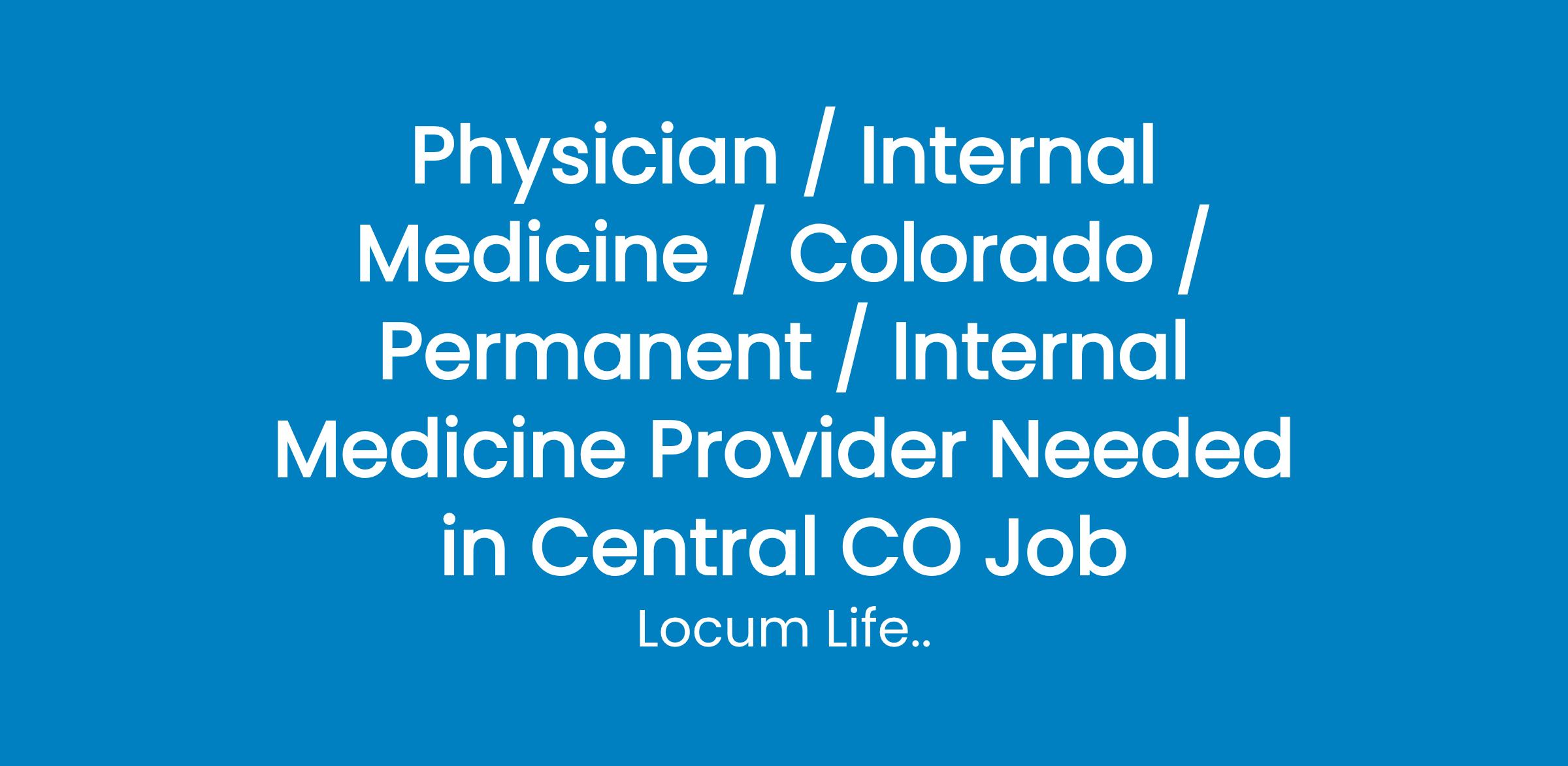 Physician / Internal Medicine / Colorado / Permanent / Internal Medicine Provider Needed in Central CO Job