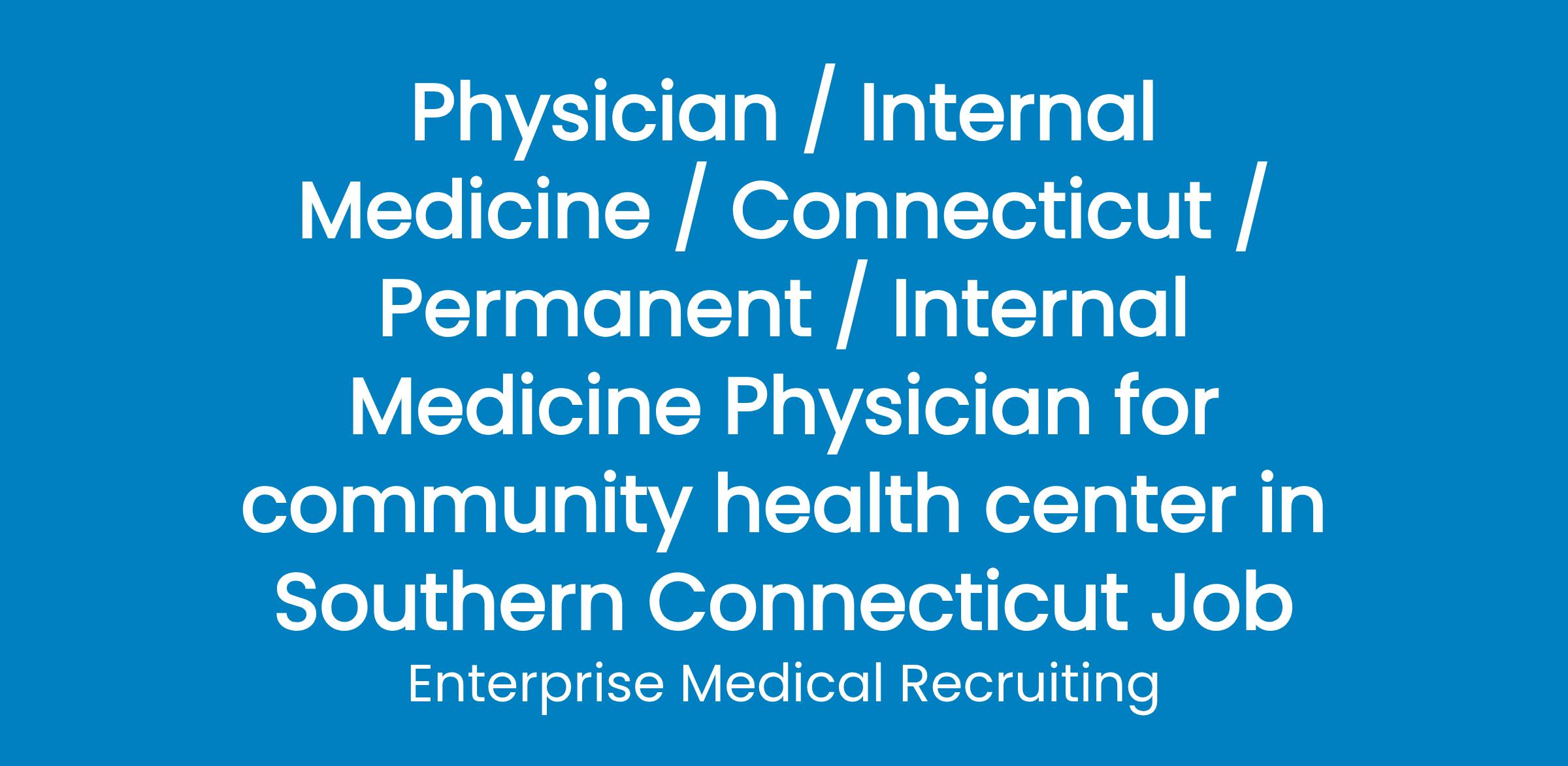 Community health center in southern Connecticut has an outpatient opportunity for an Internal Medicine physician.