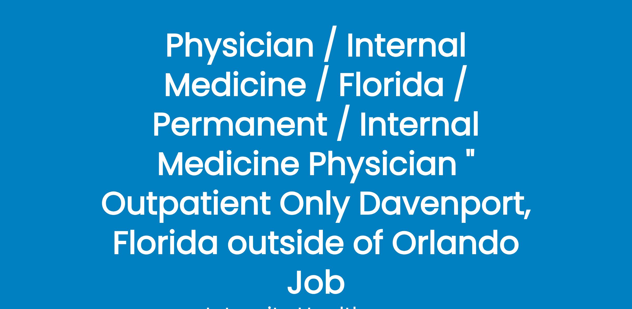 Physician / Internal Medicine / Florida / Permanent / Internal Medicine Physician " Outpatient Only Davenport, Florida outside of Orlando Job