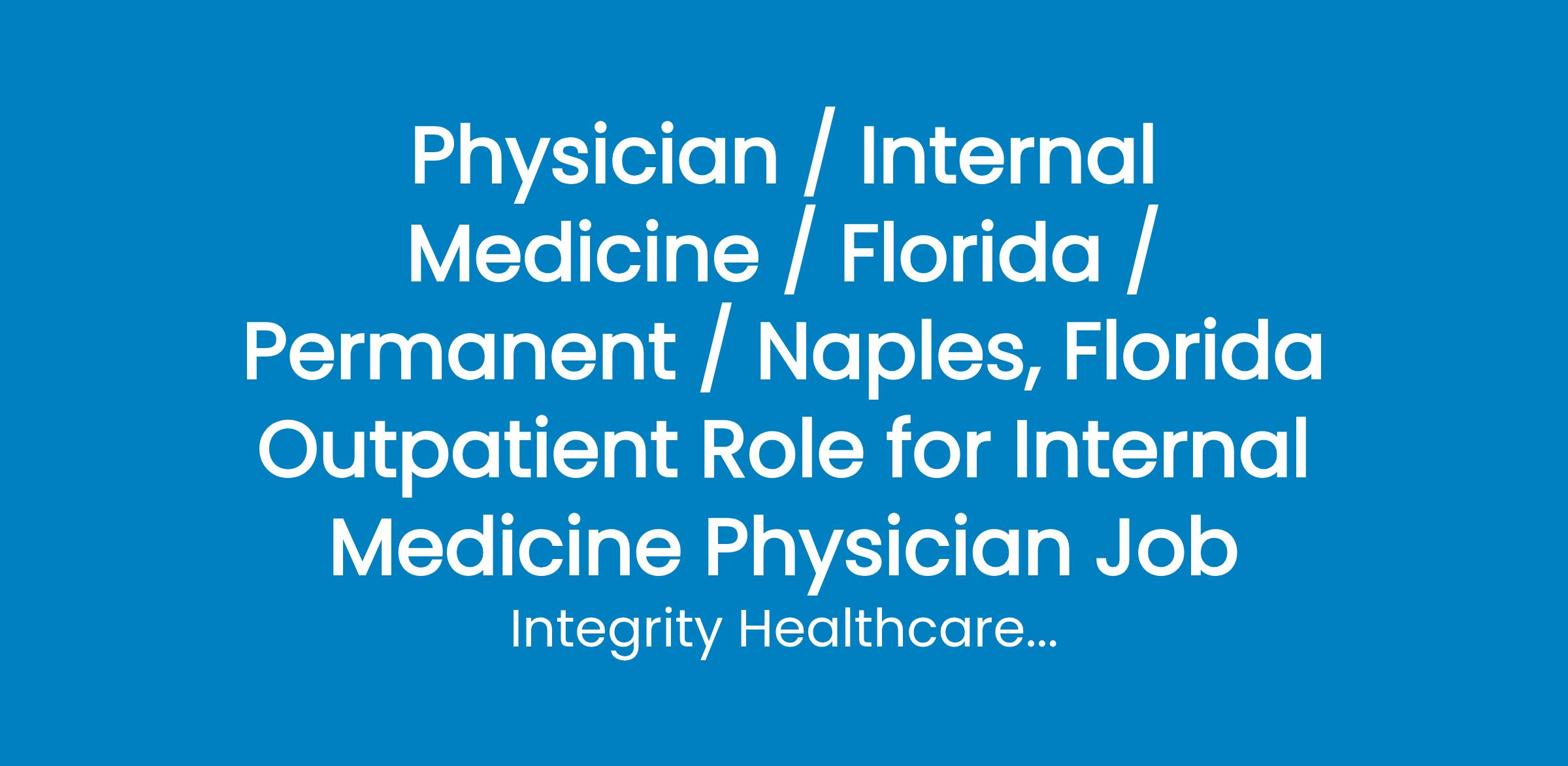Physician / Internal Medicine / Florida / Permanent / Naples, Florida Outpatient Role for Internal Medicine Physician Job