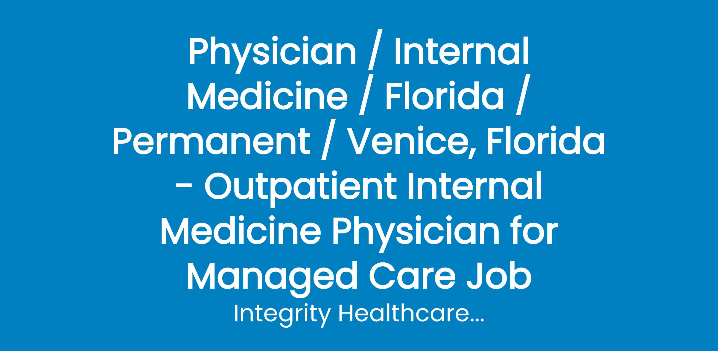 Physician / Internal Medicine / Florida / Permanent / Venice, Florida - Outpatient Internal Medicine Physician for Managed Care Job