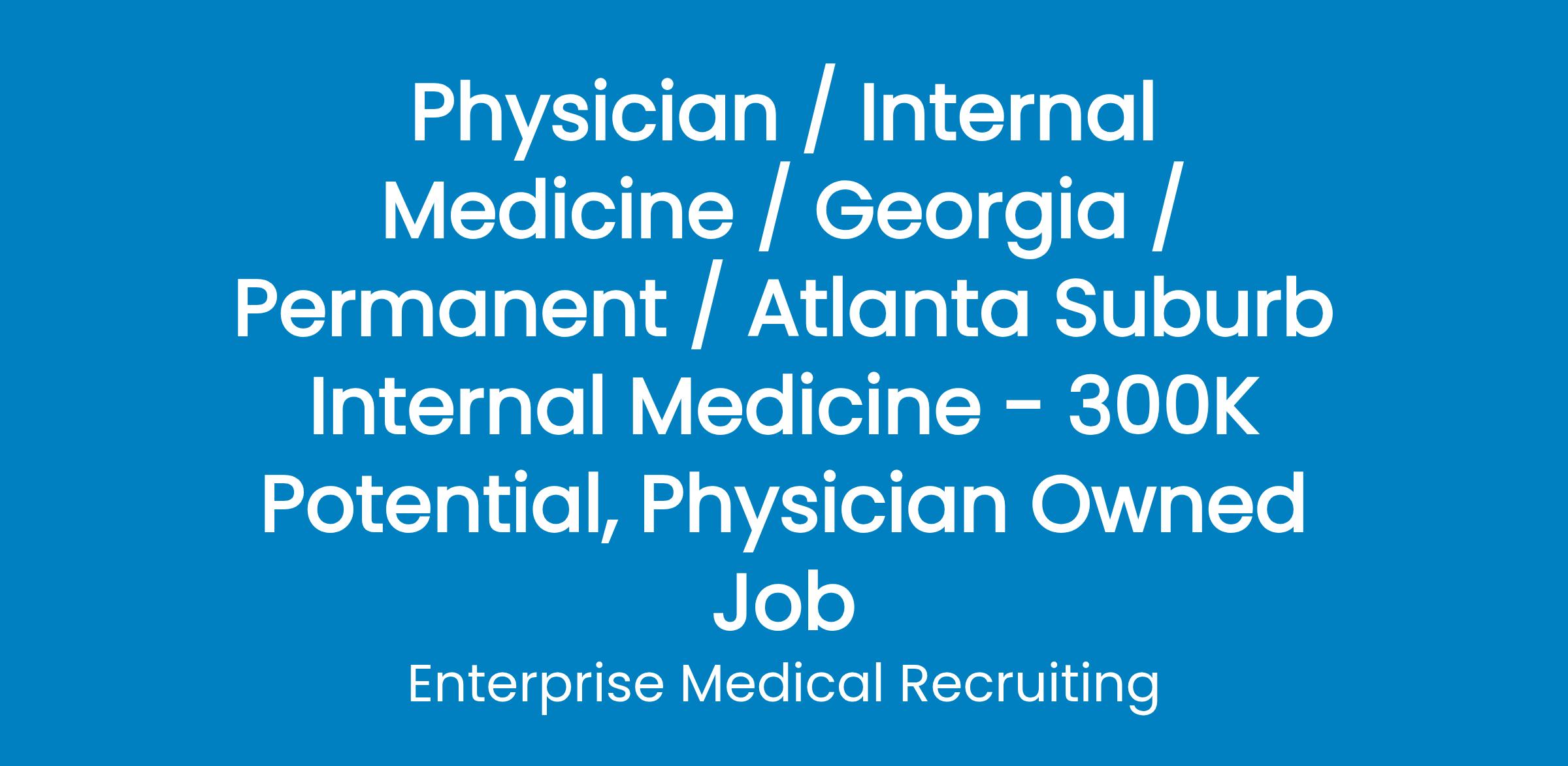 Enterprise Medical is representing a prominent physician-owned and operated. group practice with five offices in the greater Atlanta area. We currently have an opening for an internal medicine physician in a primary care office one hour north of Atlanta.