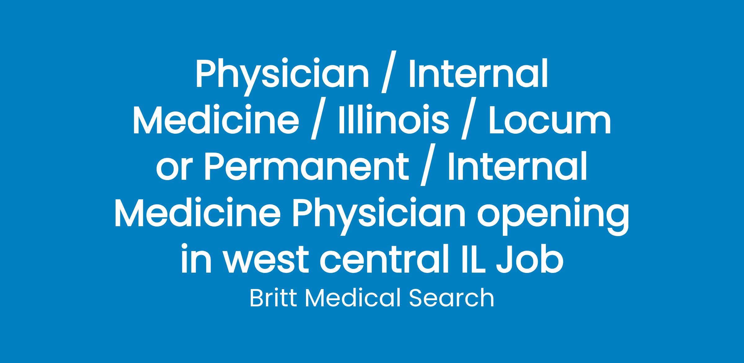 Seeking an additional BE/BC Family Medicine or Internal Medicine physician to join our multi-specialty clinic in Illinois.