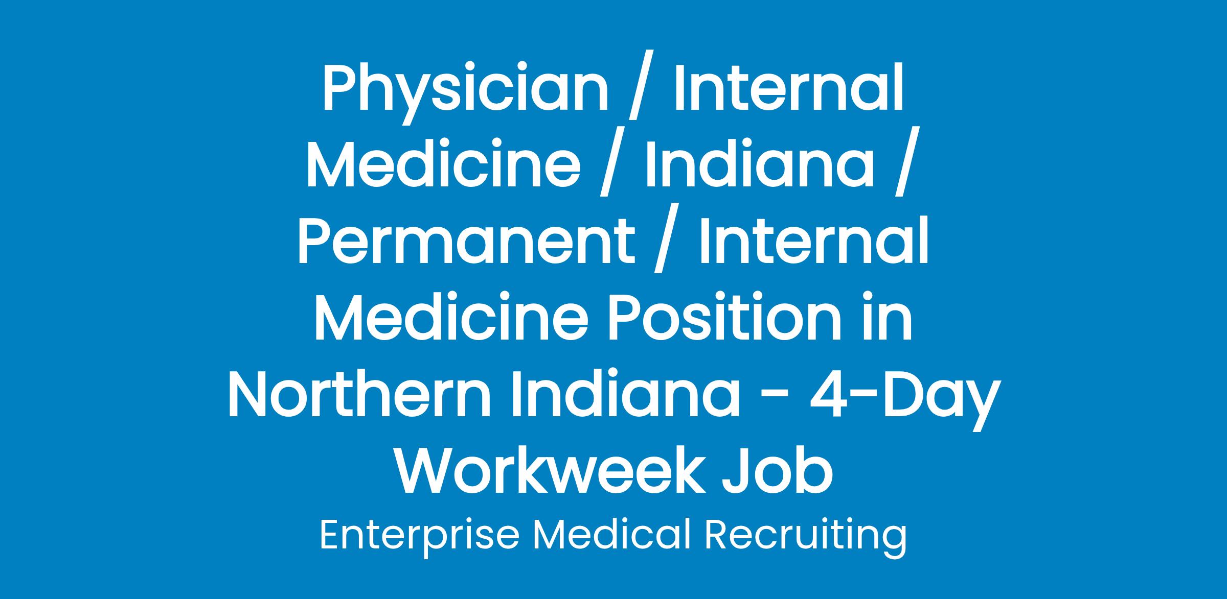 Enterprise Medical is assisting a primary care group in northern Indiana with their search for an Internal Medicine physician. The group provides primary and preventive care to patients of all ages, regardless of their ability to pay.