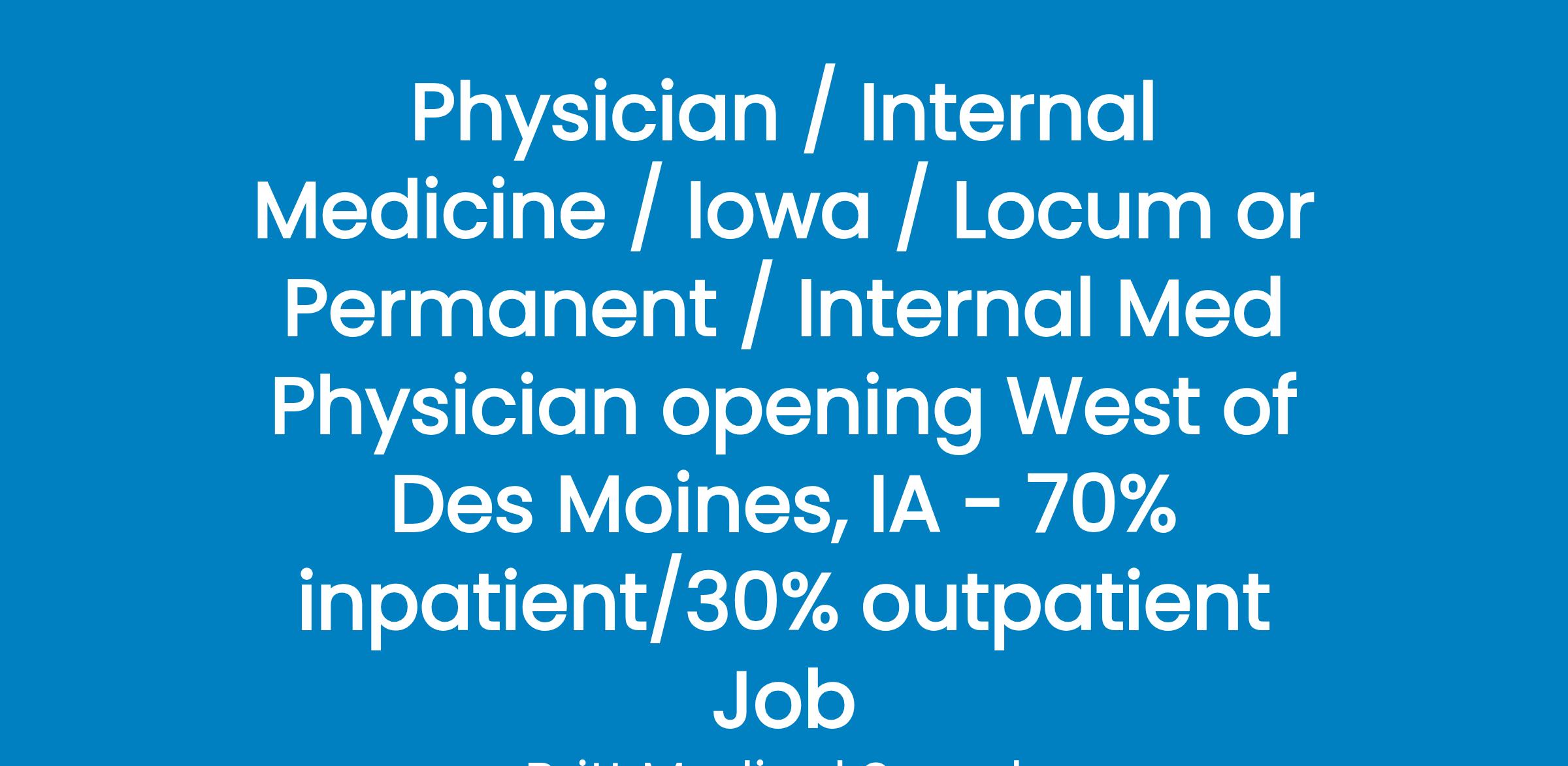 Seeking Internal Medicine Physician to join our team in southwest Iowa. We offer comprehensive services in primary care, inpatient, outpatient observation, skilled care, specialty care, and rural health clinics.