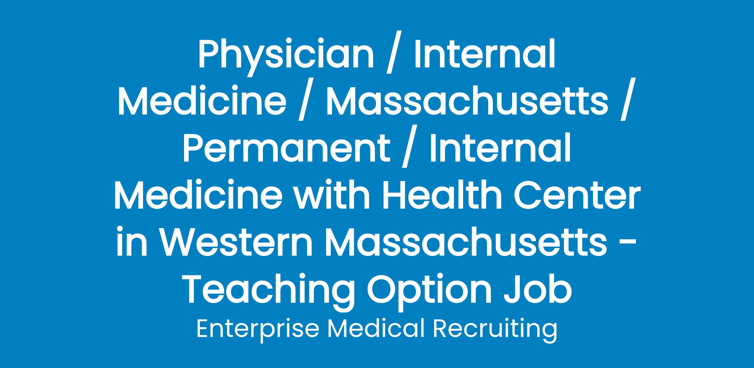 Community Health Center with 20 Providersin western Massachusetts is recruiting for an Internal Medicine physician for an outpatient position.