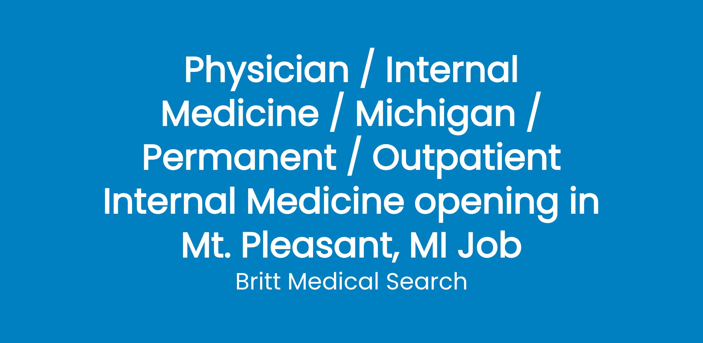 Full-time Internal Medicine Physician opportunity to join a large and well-established practice in Mt. Pleasant, Michigan! Patients and providers have access to 24/7 full-service laboratory, imaging including CT and X-Ray, Emergency Department and a variety of specialty services.