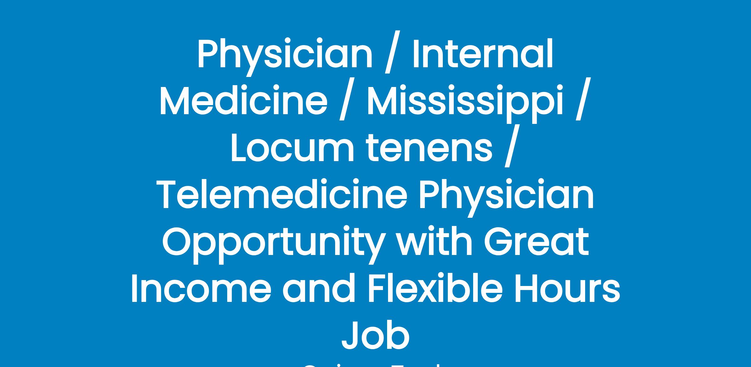 Physician / Internal Medicine / Mississippi / Locum tenens / Telemedicine Physician Opportunity with Great Income and Flexible Hours Job