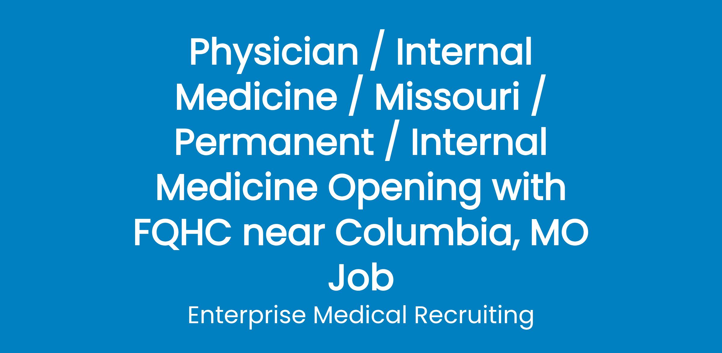 Interviewing BC/BE Internal Medicine Physicians to join a Federally Qualified Health Center in Central Missouri.