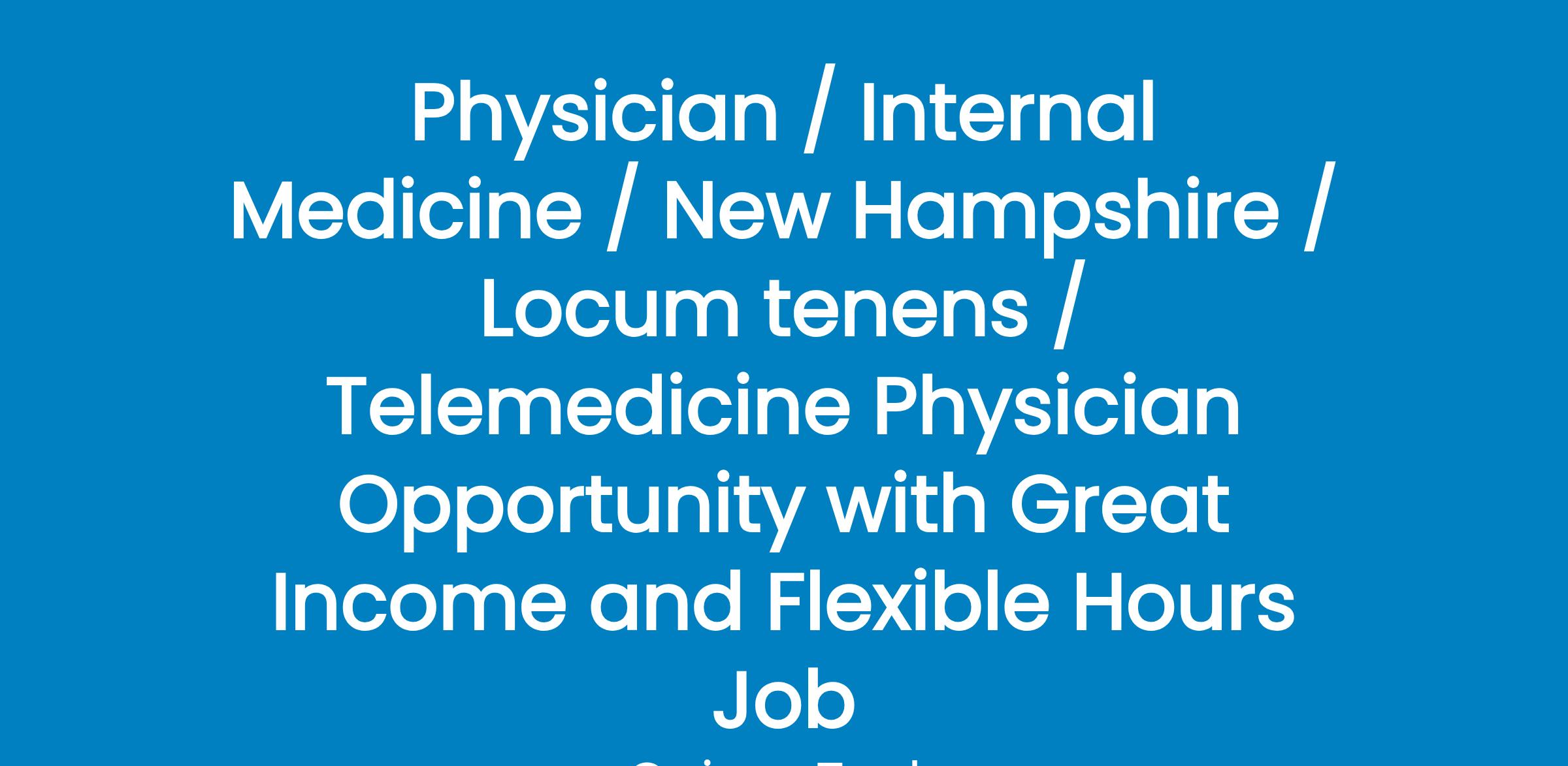 Physician / Internal Medicine / New Hampshire / Locum tenens / Telemedicine Physician Opportunity with Great Income and Flexible Hours Job