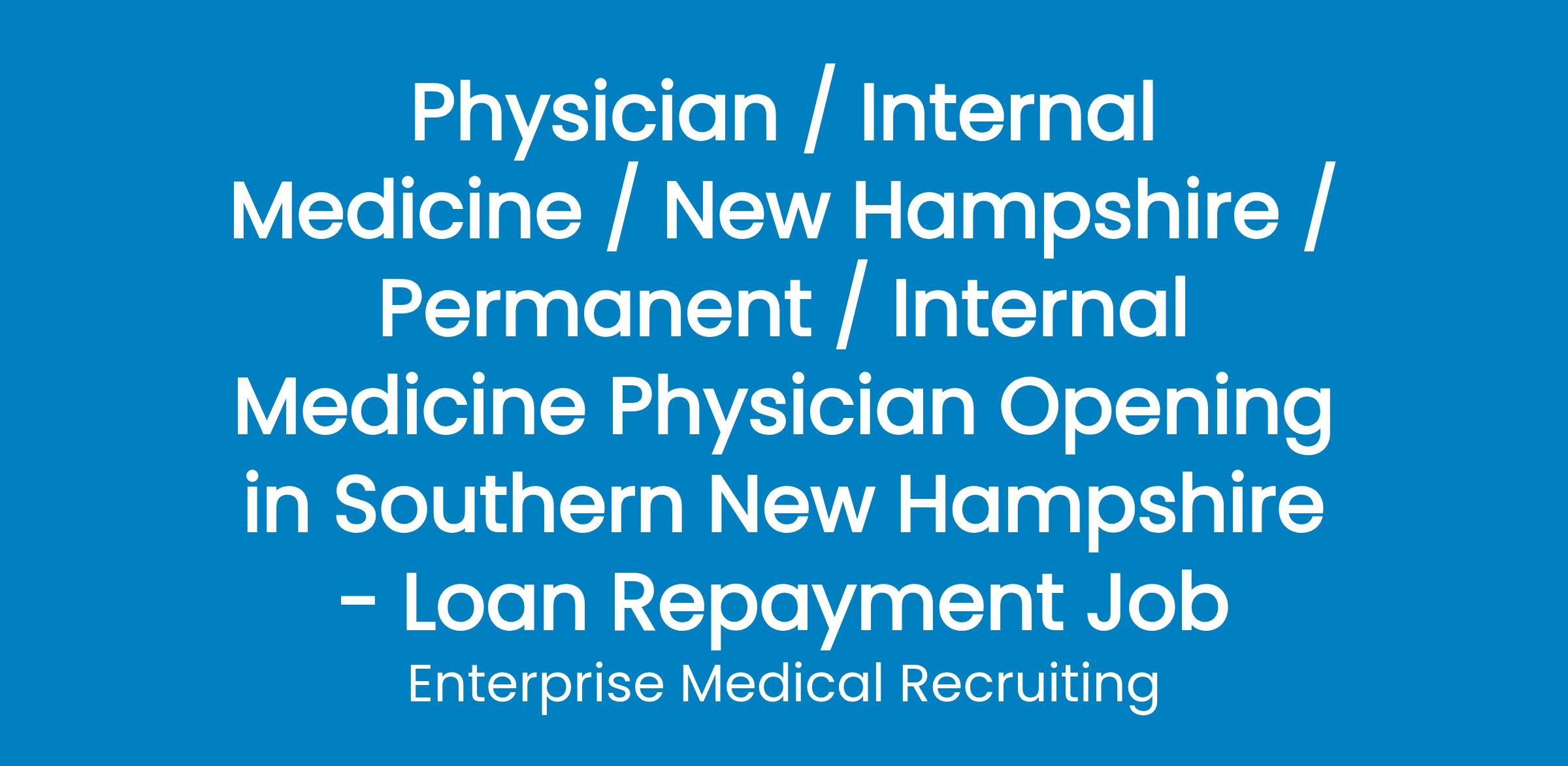 The largest provider of comprehensive healthcare services in Southern New Hampshire is seeking an Internal Medicine Physician.Join a team of over 4,000 dedicated staff members in a health systemrecognized as the top employer in healthcare and the New Hampshire-based employer across all industries.