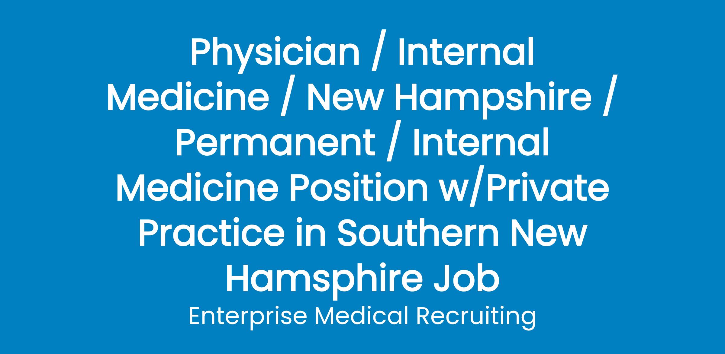 A dynamic, multi-specialty, provider-led group in southern New Hampshire is adding an Internal Medicine physician to its thriving practice. They have 40 years of history and are one of the last private practices in the state. This is a wonderful, physician-owned and operated clinic withrealwork-life balance, and the autonomy to practice the way you want.