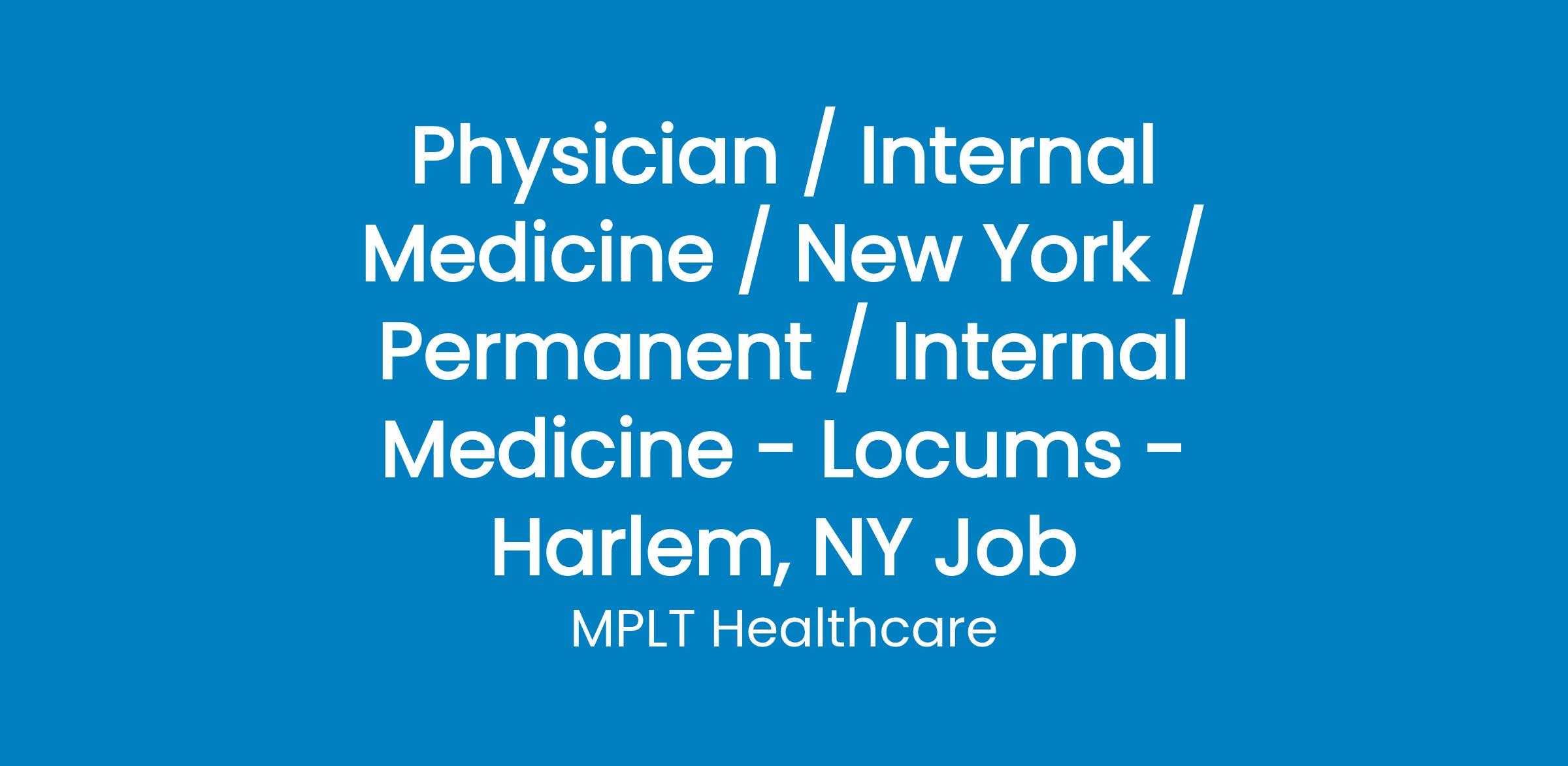 MPLT Healthcare is looking for physicians who Understand the Urgency, Never Give Up, and Have the Courage to Excel in the forever changing medical industry! We have numerous opportunities for an experienced Internal Medicine Physician with highly competitive pay rates in Harlem, NY.