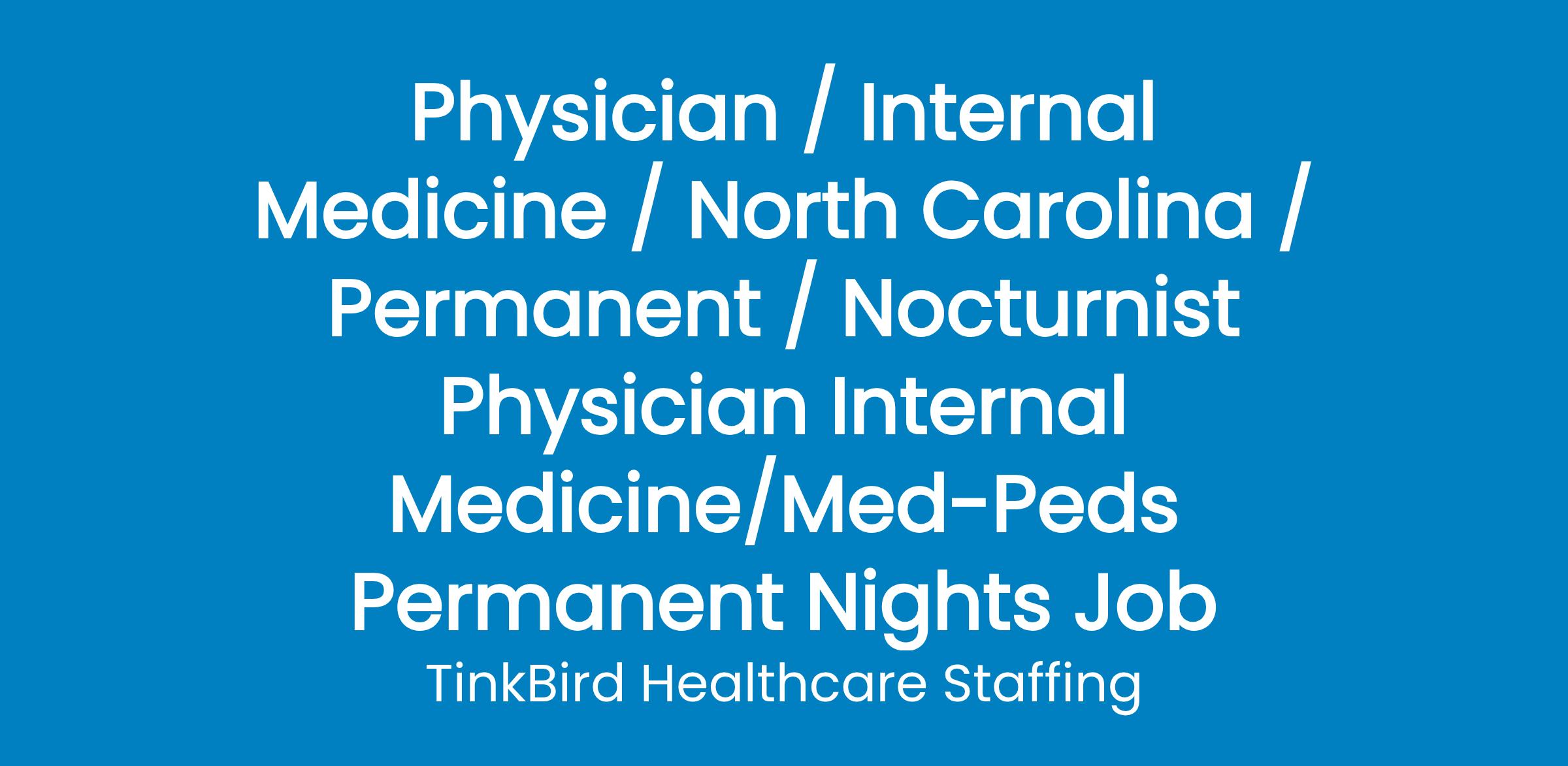 TinkBird Healthcare Staffing is seeking a Board Eligible or Board Certified Internal Medicine or Med-Peds physician to join a well-established hospitalist program as a Nocturnist in Kenansville, North Carolina. This position offers a flexible night schedule, strong specialty support, and the opportunity to work within a collaborative, high-quality inpatient team. New graduates and visa candidates are welcome to apply.Practice DetailsNocturnist hospitalist positionEstablished Med-Peds hospitalist program with physician and APP supportCommunity hospital setting with an open ICU modelTele-intensivist support available overnightFully integrated EPIC EHRSchedule OptionsThree 14-hour night shifts per week or Six 14-hour night shifts every other weekClinical ResponsibilitiesNighttime hospitalist coverageAverage nightly admission volume of approximately 6 patientsICU responsibilities including ventilator management, lumbar punctures, and central line placementCollaboration with on-site and consulting specialty servicesSpecialty SupportGeneral SurgeryCardiologyOtolaryngologyOrthopedic SurgeryObstetrics and GynecologyGastroenterologyNephrologyOphthalmologySleep MedicineSpeech TherapyPhysical TherapyCandidate RequirementsBoard Eligible or Board Certified in Internal Medicine or Med-PedsEligible for medical licensure in North CarolinaComfortable managing ICU-level patients with tele-intensivist supportCompensation & BenefitsCompetitive compensation packageAnnual administrative stipendRelocation assistancePaid vacation timeComprehensive benefits including medical, dental, vision, disability, and life insuranceMalpractice coverage with tailRetirement plans with employer matching and deferred compensation optionsEligibility for sign-on bonus, loan repayment, income guarantees, and residency or fellowship commitment stipendsLocationKenansville, North Carolina offers a low cost of living, rural charm, and easy access to both coastal and metropolitan destinations. The area provides a relaxed lifestyle with proximity to Wilmington, Raleigh, and North Carolinas beaches, making it an appealing option for physicians seeking balance and accessibility.About TinkBird Healthcare StaffingTinkBird Healthcare Staffing is a national healthcare recruiting and staffing firm specializing in permanent placement and locum tenens opportunities. We partner closely with healthcare organizations and providers to deliver personalized, transparent, and efficient recruitment solutions tailored to long-term success.To learn more about this opportunity or to apply, please contact: