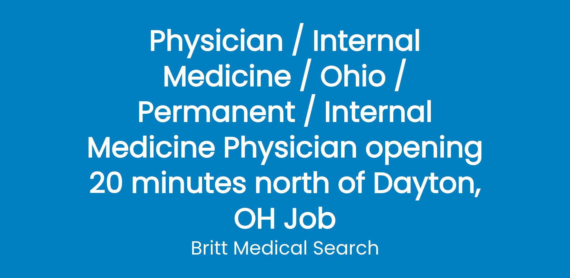 Primary Care practice north of Dayton, OH is seeking to add a BE/BC Internal Medicine Physician to its team.