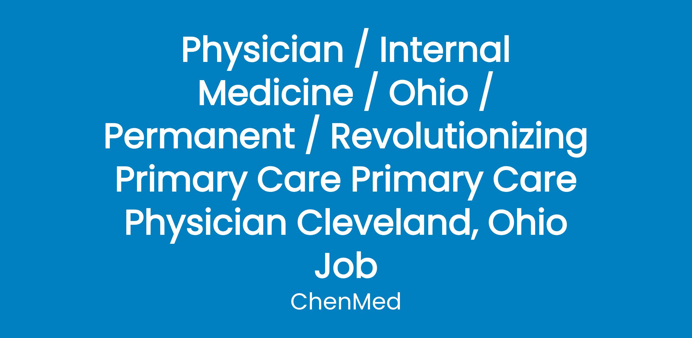 Physician / Internal Medicine / Ohio / Permanent / Revolutionizing Primary Care Primary Care Physician Cleveland, Ohio Job