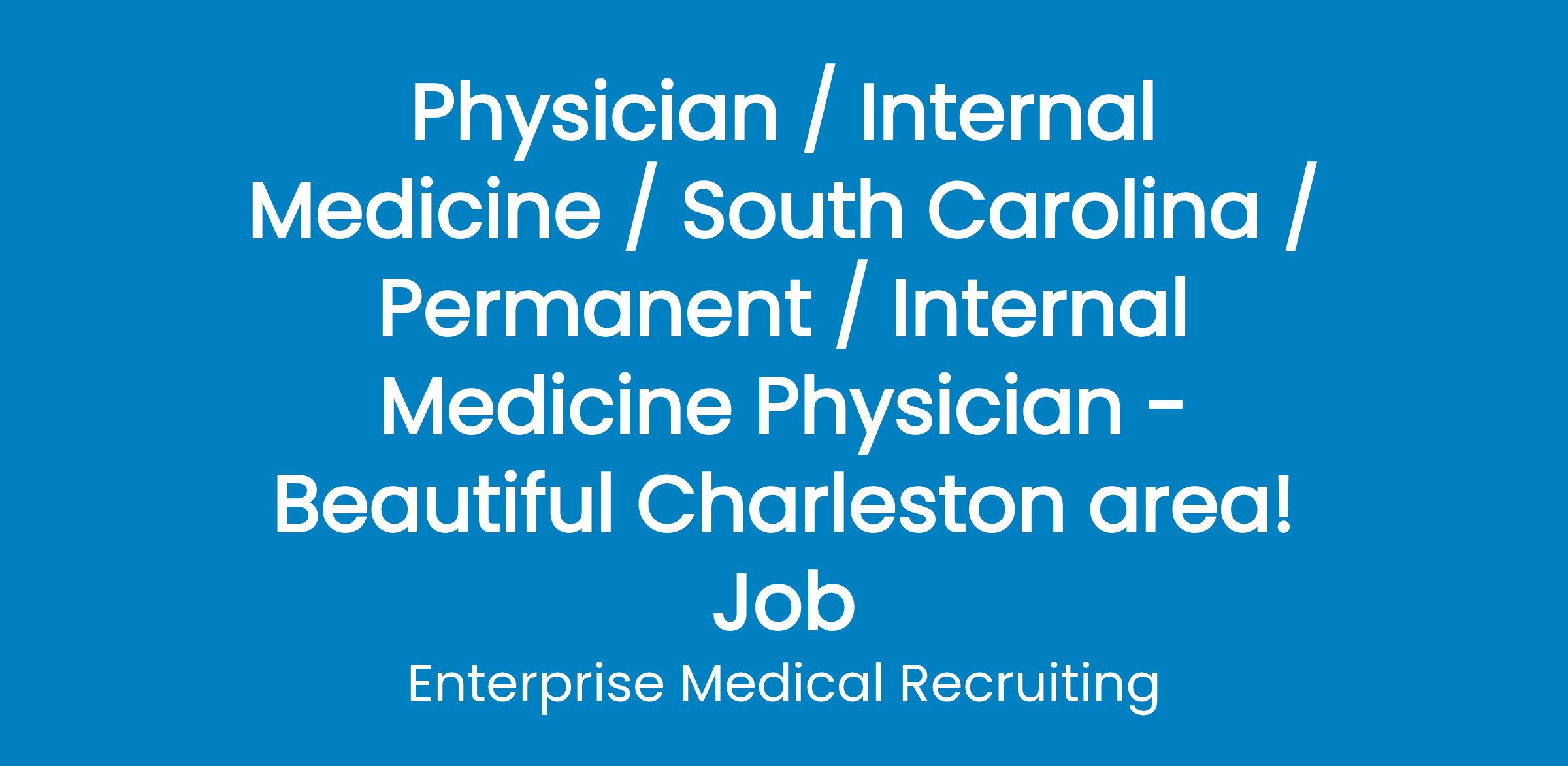 A healthcare system in the Charleston, SC area is actively interviewing internal medicine physicians for their primary care group.