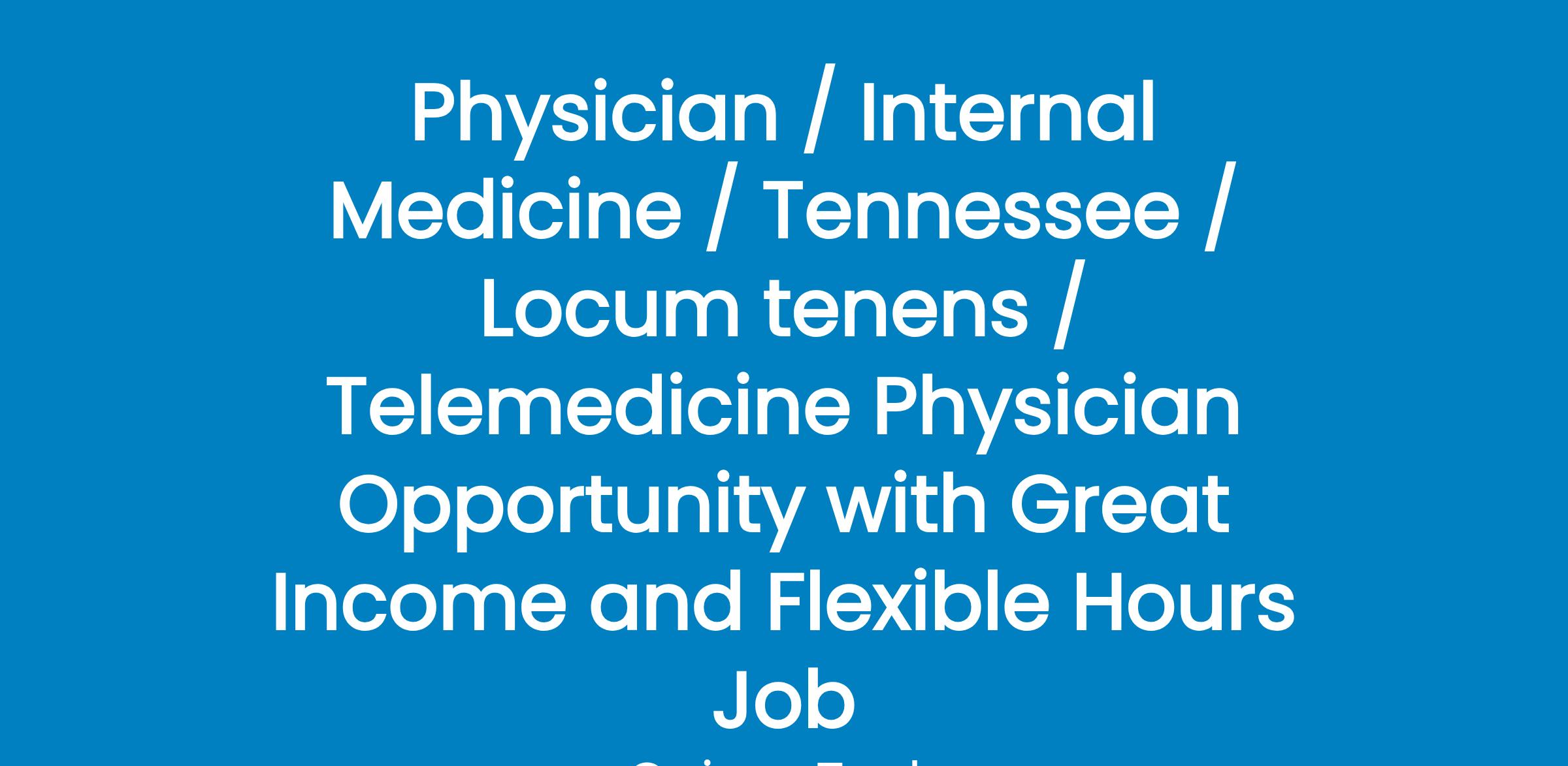 Physician / Internal Medicine / Tennessee / Locum tenens / Telemedicine Physician Opportunity with Great Income and Flexible Hours Job