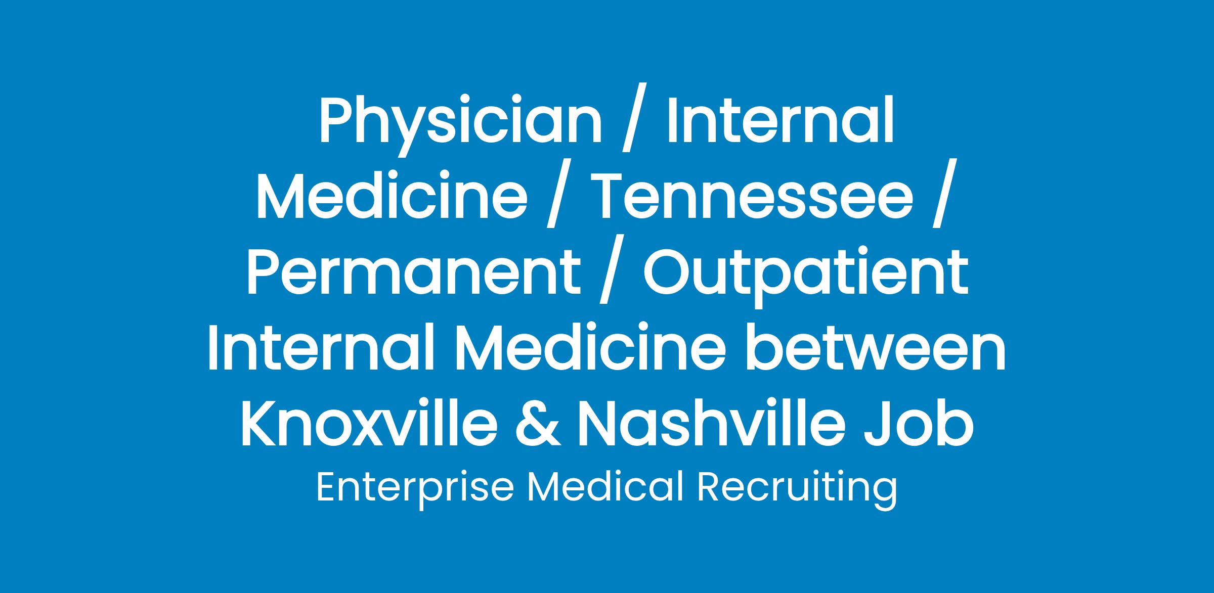 Two employed, Internal Medicine opportunities in Crossville, TN. Work in the main clinic or their walk-in clinic.