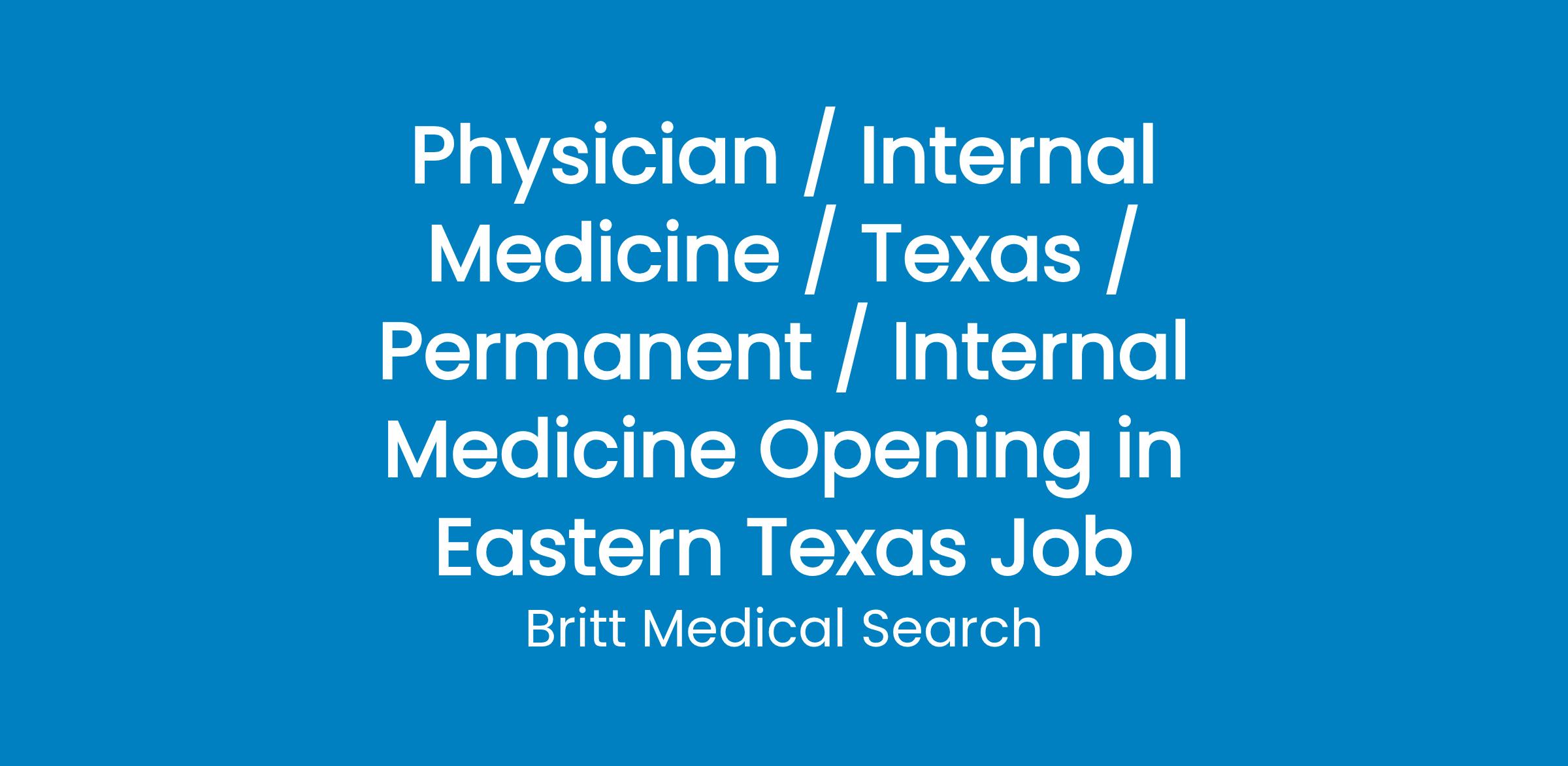 Medical Center, located in the heart of the Piney Woods, has an opportunity for an Internal Medicine physician to join its growing primary care staff. This is an employed outpatient position joining 1 provider and medical staff team.