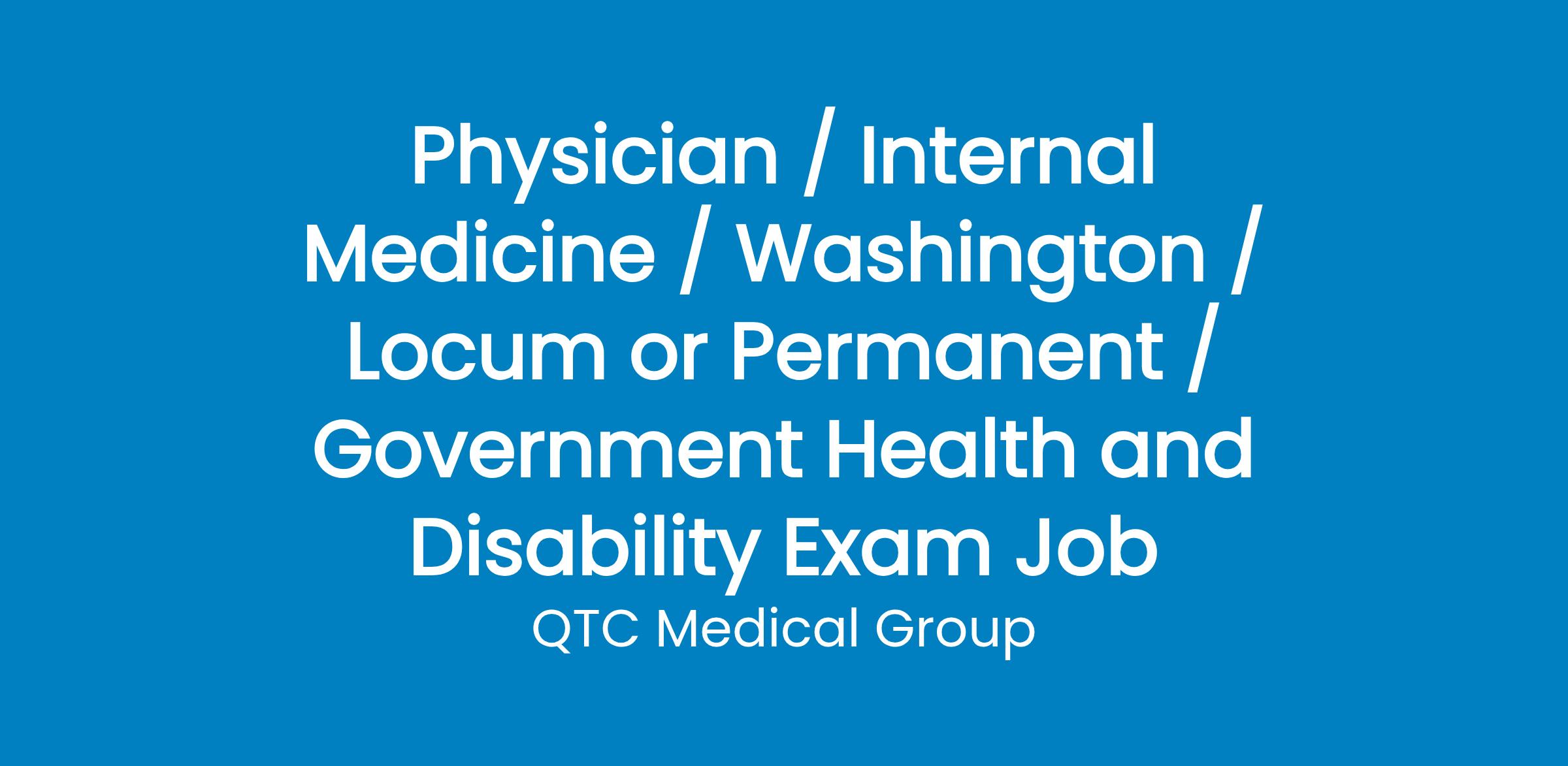 Physician / Internal Medicine / Washington / Locum or Permanent / Government Health and Disability Exam Job
