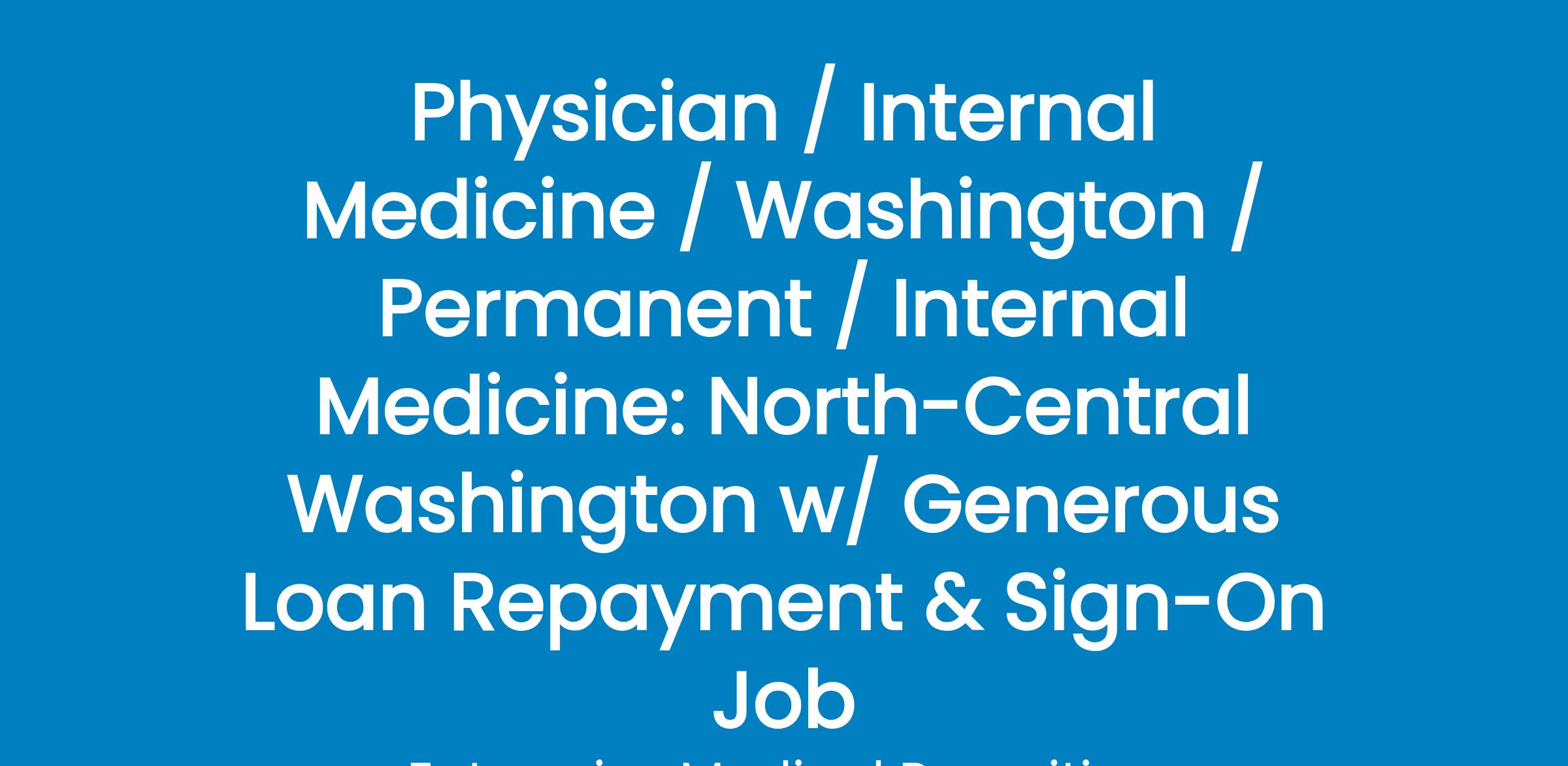 Seeking a BC/BE Internal Medicine Physicianto join an established practice inbeautiful Wenatchee, Washington! If you are caring, compassionate, committed to providing excellent service, and willing to go above and beyond for your patients, this is the place for you!