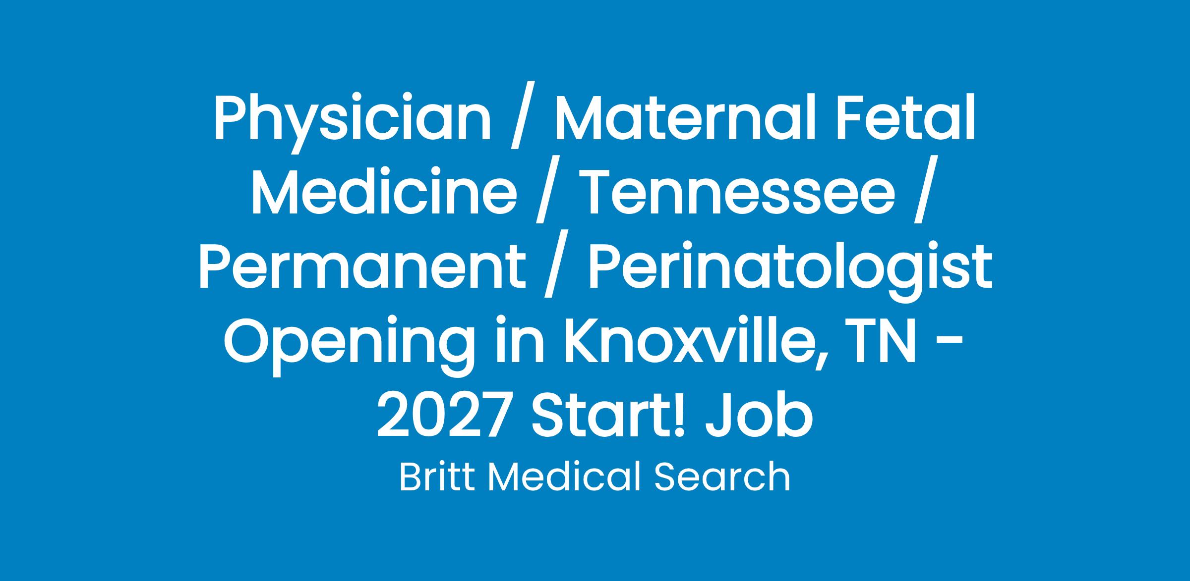 Perinatal Center is seeking a BC/BE Maternal Fetal Medicine Physician to join their team in Knoxville, TN!