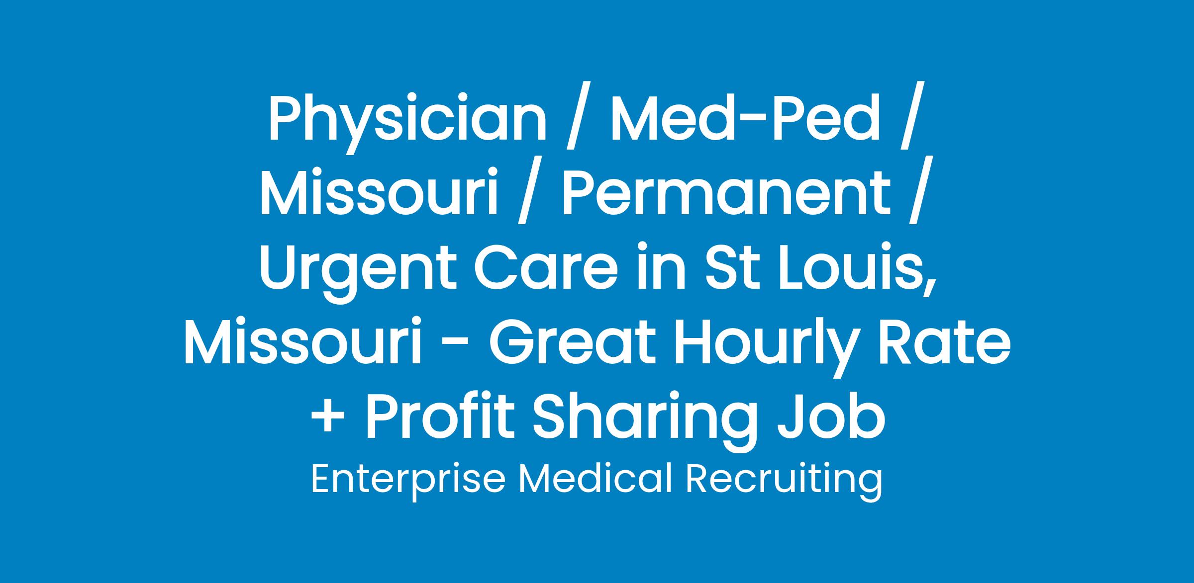 Urgent Care organization with 27 locations throughout greater St Louis is adding physicians to their team.