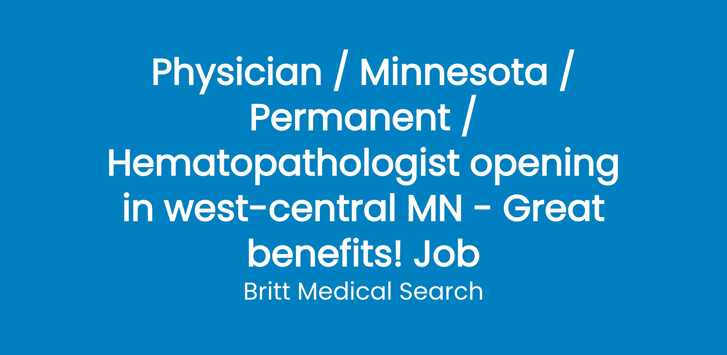 Non-profit, mid-sized healthcare organization is seeking a BE/BC Hematopathologist to join their team in west central Minnesota!