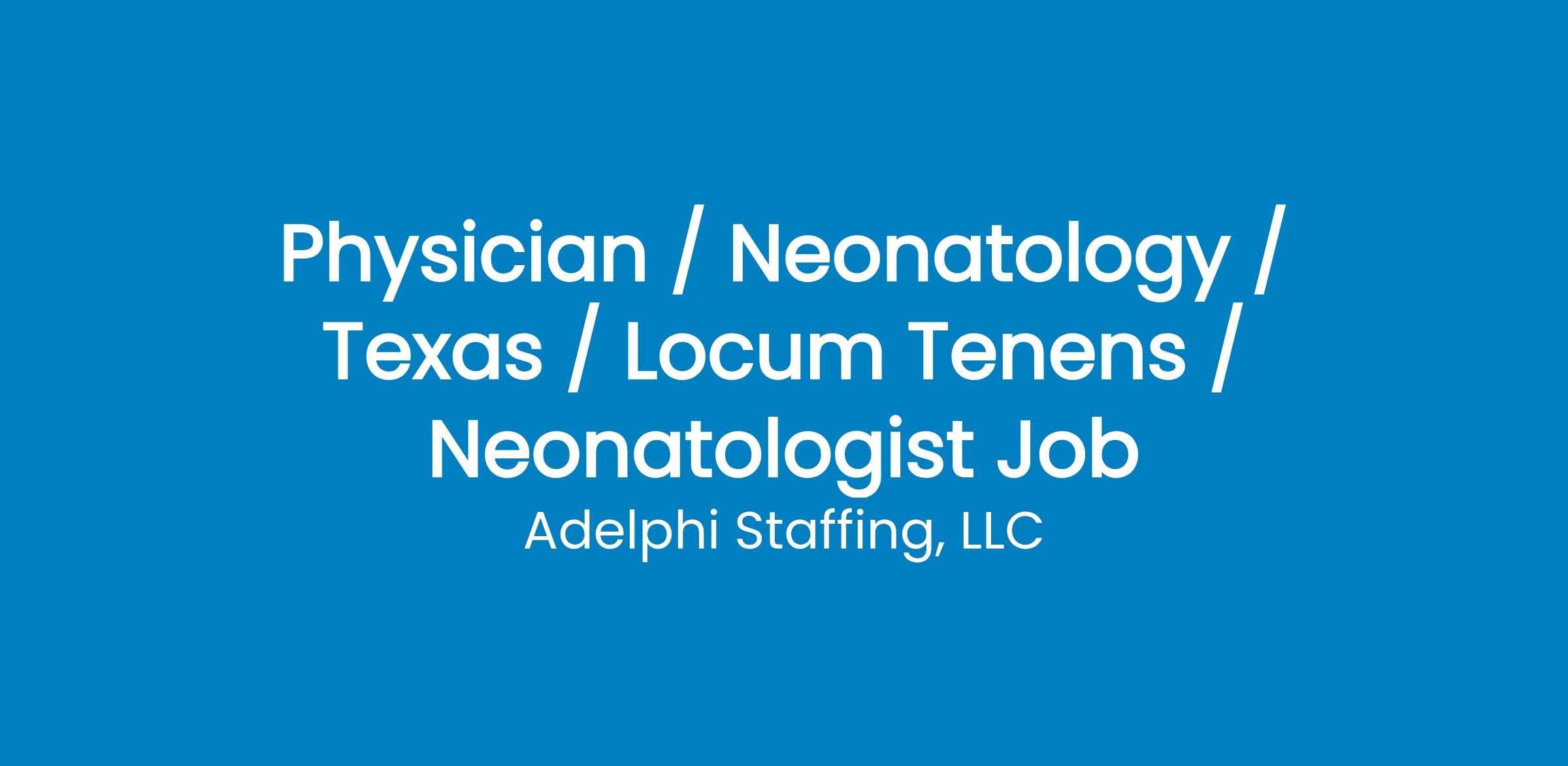 Physician / Neonatology / Texas / Locum Tenens / Neonatologist Job