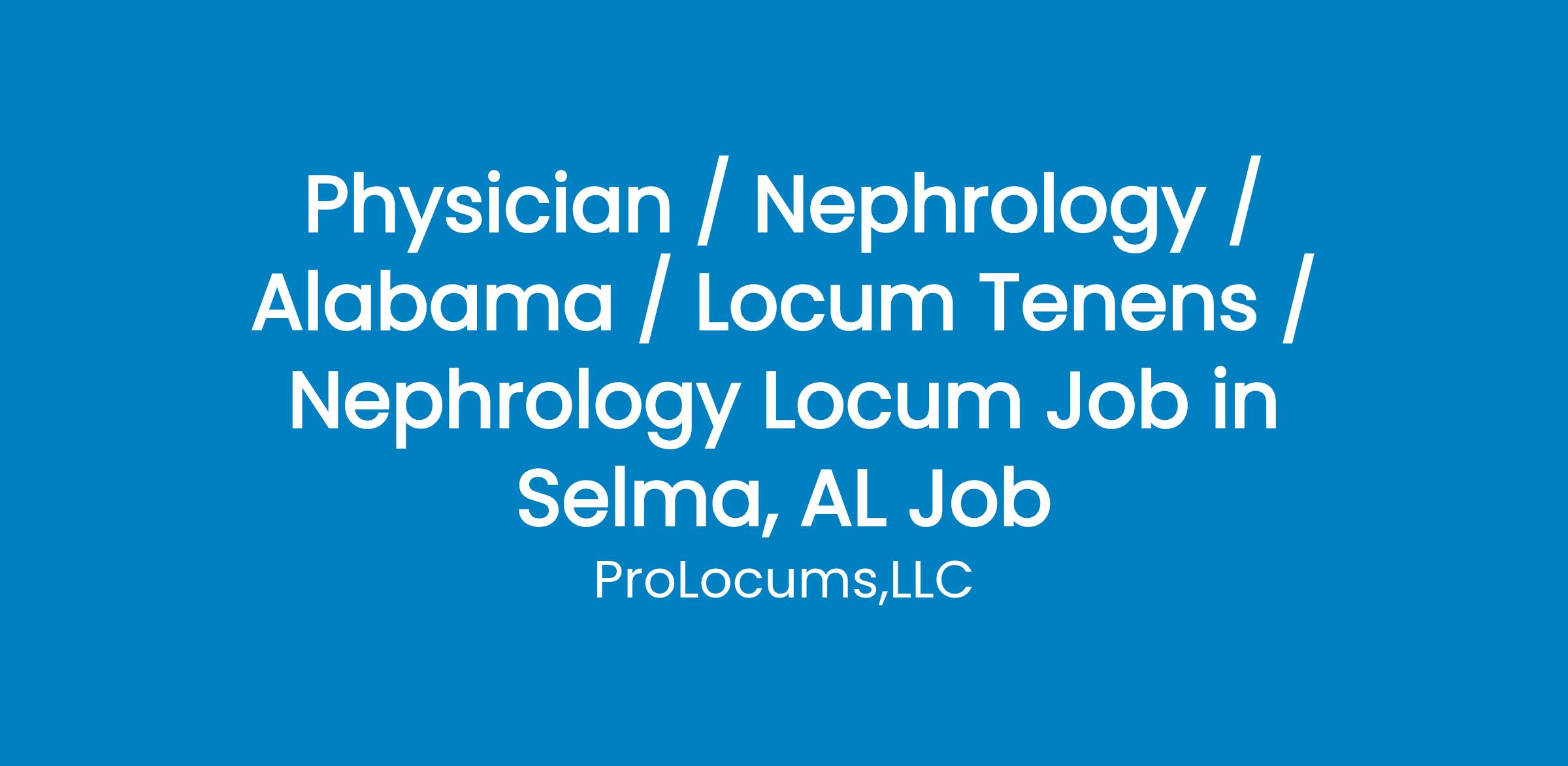 Physician / Nephrology / Alabama / Locum Tenens / Nephrology Locum Job in Selma, AL Job