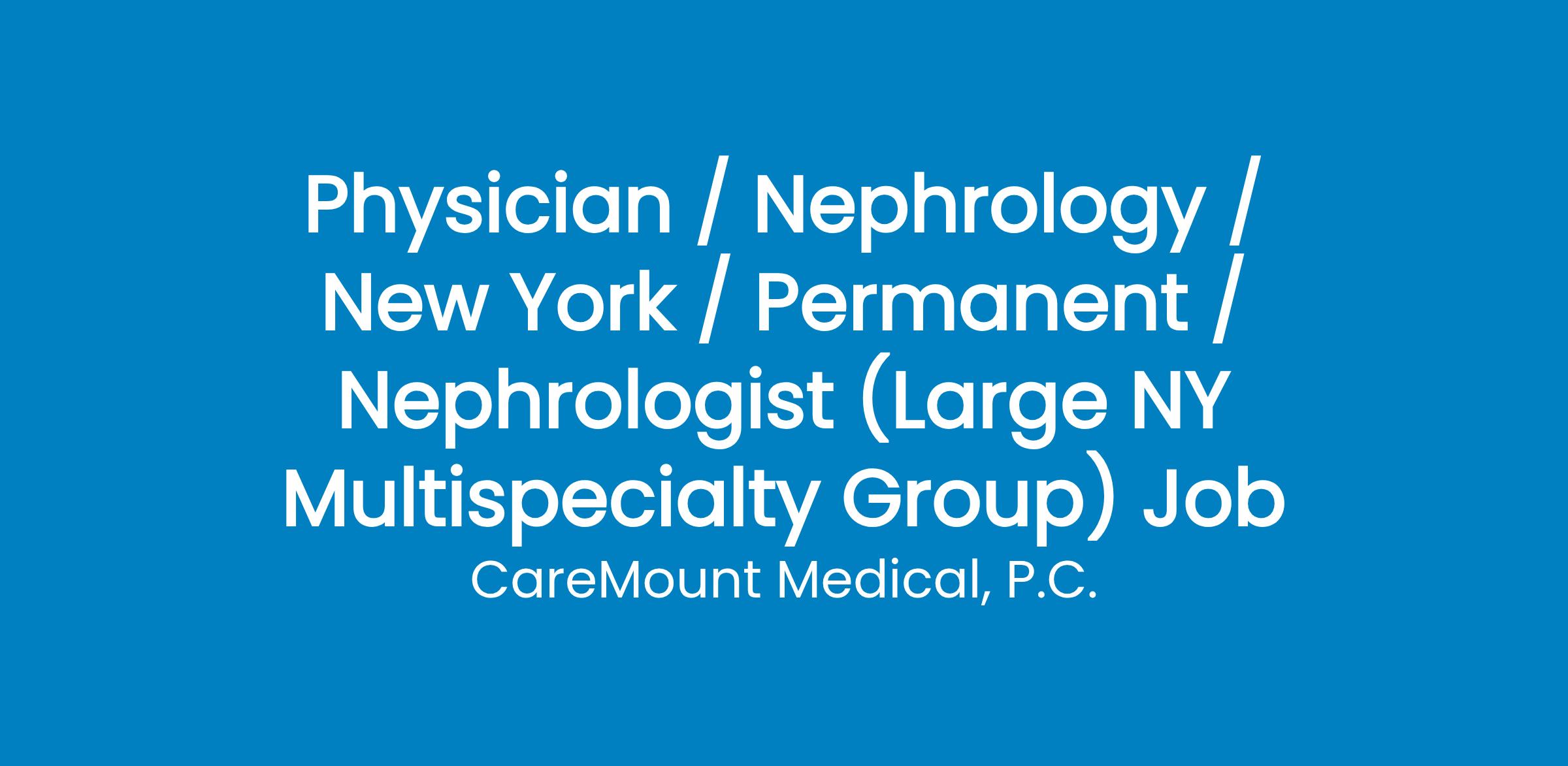 We are currently seeking BC/BE Nephrologists to join our busy practice(s) in Mount Kisco, NY. The organizations nephrology department currently consists of multiple nephrologists and is fully supported with a team of clinical & non-clinical staff as well as APCs.