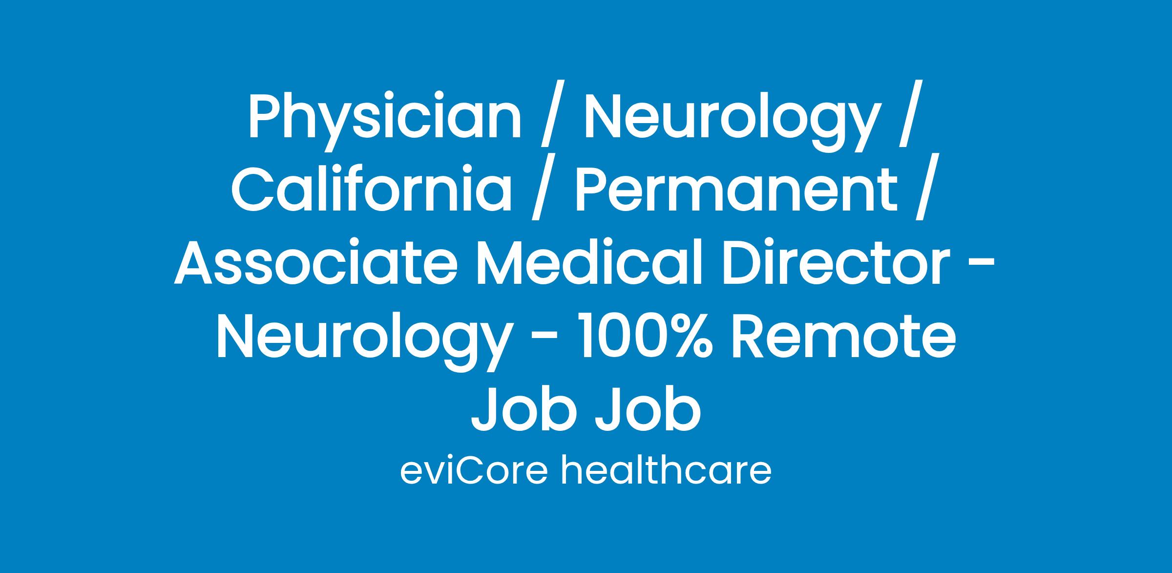 Physician / Neurology / California / Permanent / Associate Medical Director - Neurology - 100% Remote Job Job