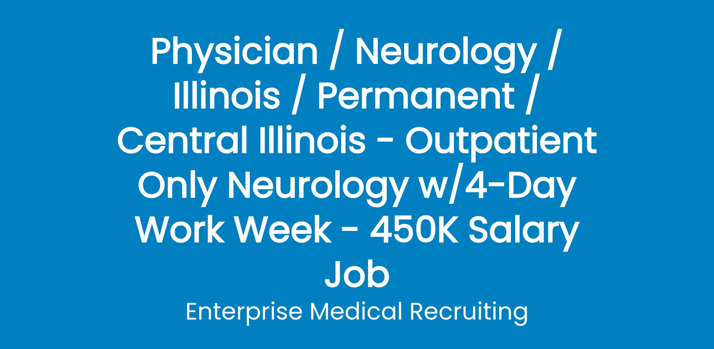 Enterprise Medical Recruiting is assisting a hospital in Central Illinois to recruit a new Neurologist! This is a hospital-employed position with a non-profit facility.