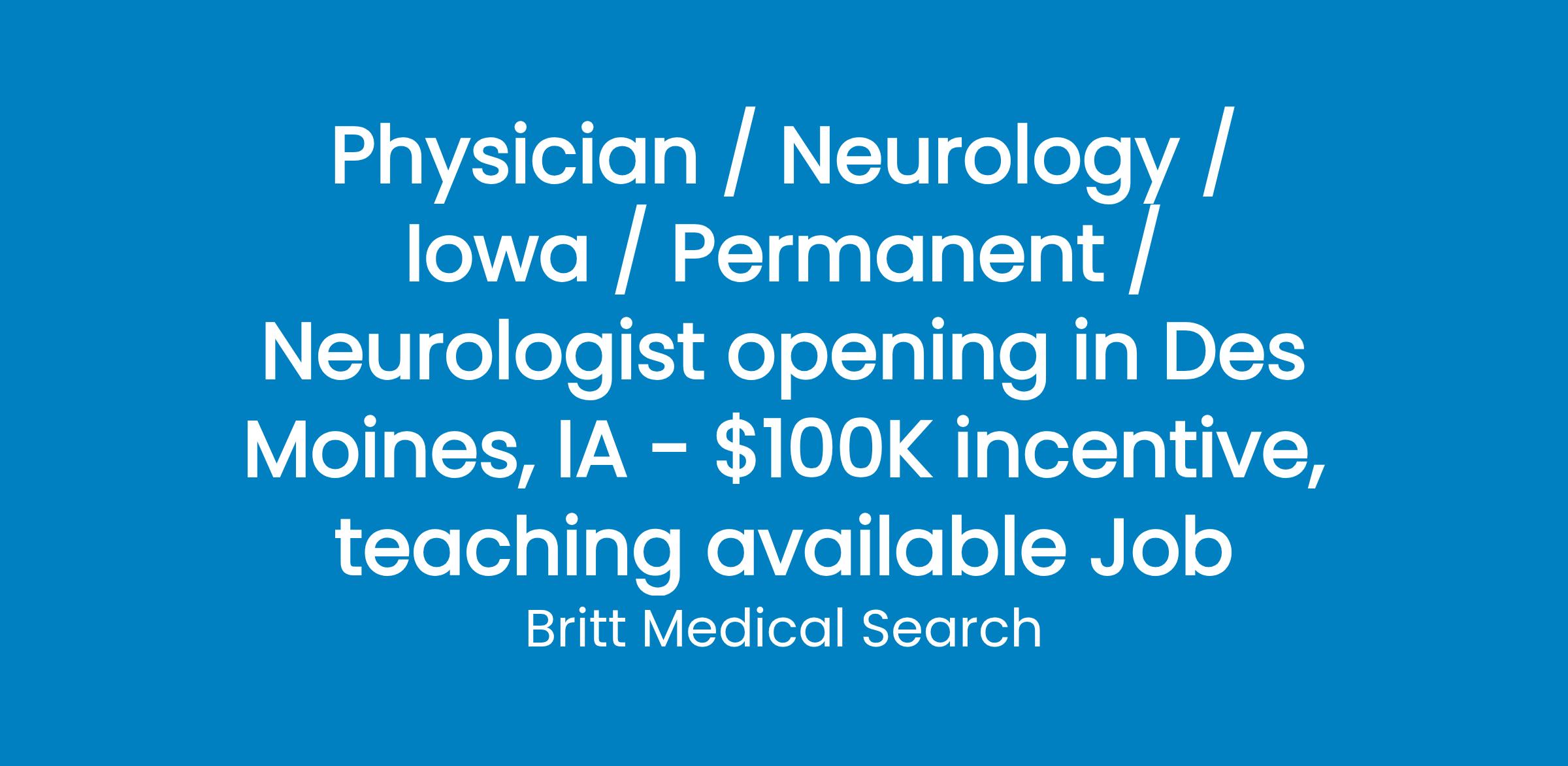 Seeking a full-time BC/BE Neurologist with an interest in Cognitive and Behavioral based setting to join a well-established practice in Des Moines, Iowa.