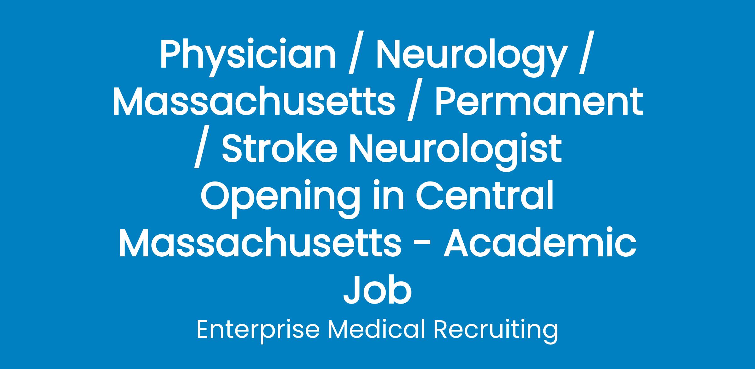 An academic center in western Massachusetts has an opening for a Stroke Neurologist Faculty position. They are the largest multispecialty group in the region.