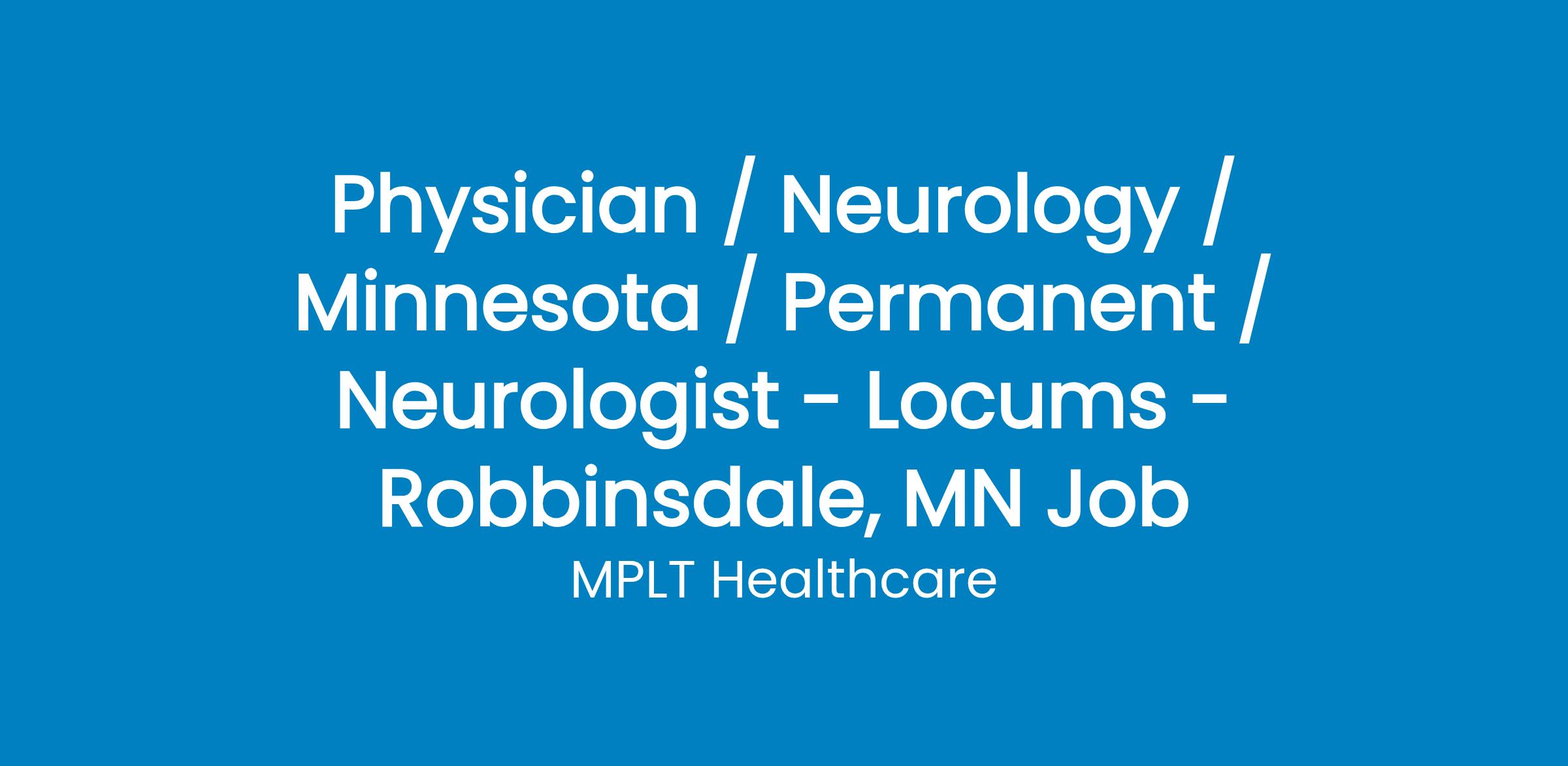 MPLT Healthcare is looking for physicians who Understand the Urgency, Never Give Up, and Have the Courage to Excel in the forever changing medical industry! We have numerous opportunities for an experienced Neurologist with highly competitive pay rates in Robbinsdale, MN.