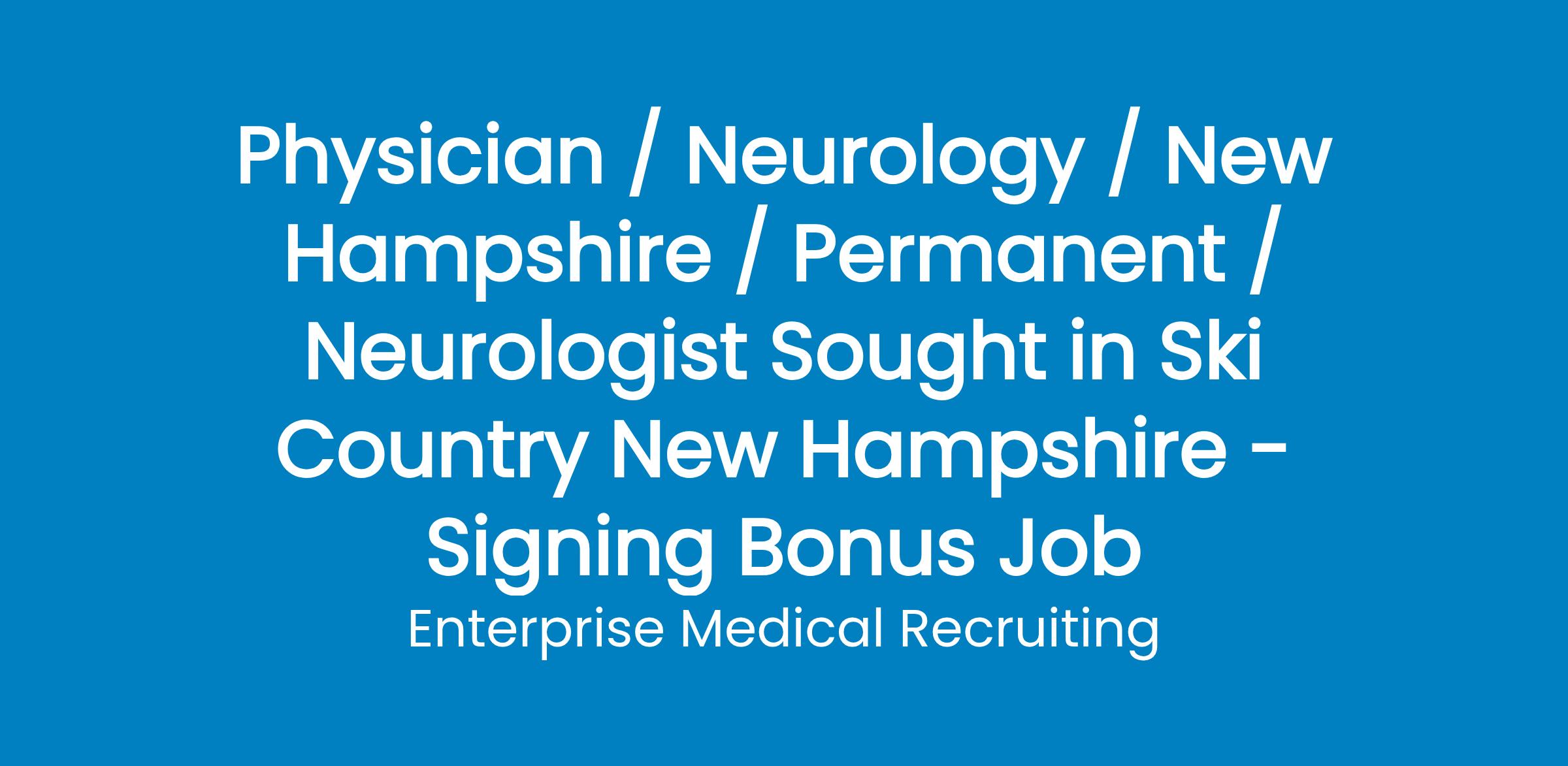 A non-profit Hospital System comprising four medical facilities is seeking a Neurologist to serve a community in the White Mountains Region of New Hampshire.