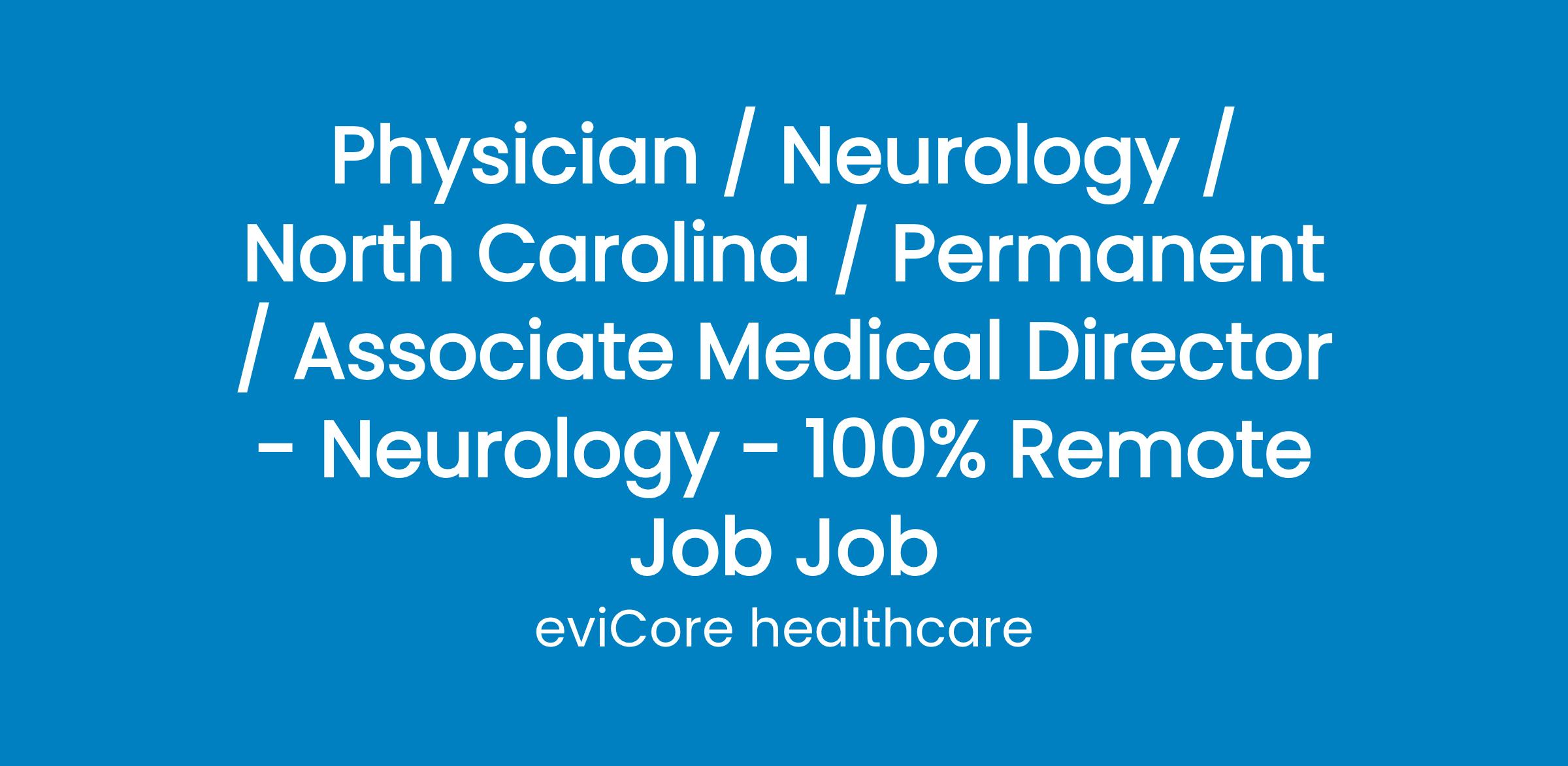 Physician / Neurology / North Carolina / Permanent / Associate Medical Director - Neurology - 100% Remote Job Job