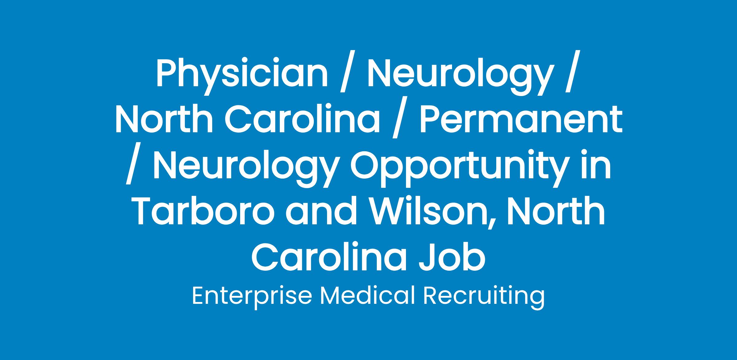 Seeking a B/E or B/C neurologist to join their growing neuroscience program in an outpatient-only position.The successful candidate will provide care with a group located in Wilson, North Carolina, and with a Multispecialty Clinic located in Tarboro, North Carolina. The close proximity of the two locations and outpatient only clinical responsibilities, combine, to offer an excellent work-life balance.